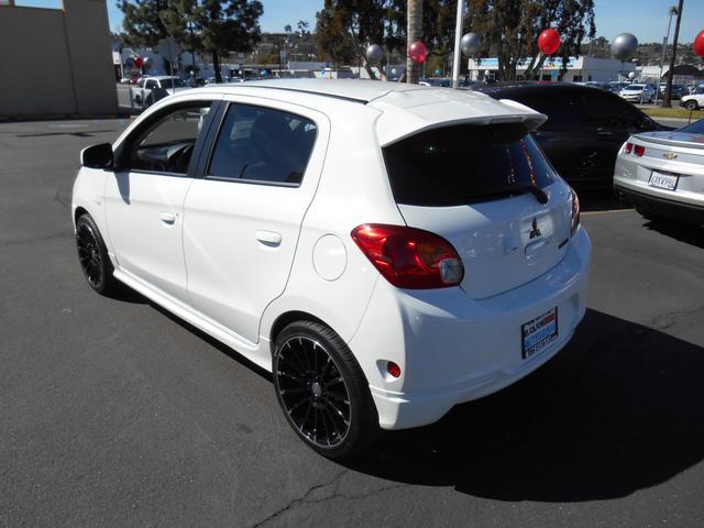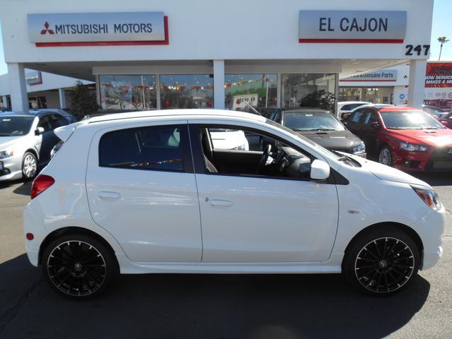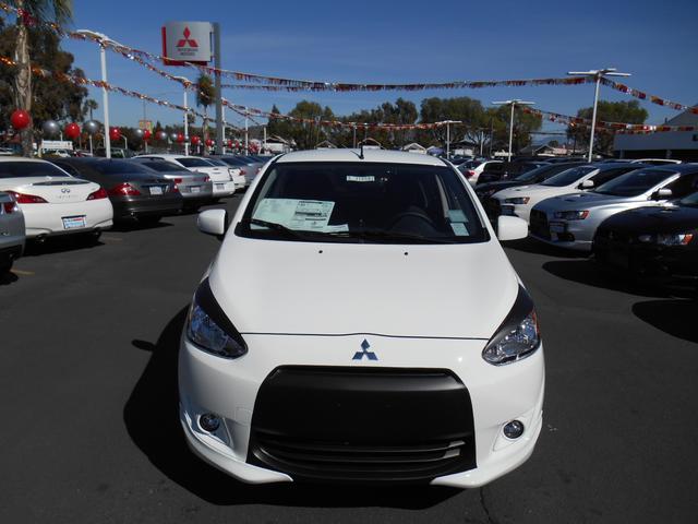 Your satisfaction is our business! Perfect Color Combination! If you demand the best things in life, this outstanding 2014 Mitsubishi Mirage is the gas-saving car for you. This Mirage will save you cash at the pumps with its fuel efficient 1.2L engine. It is nicely equipped with features such as 4 Speakers, ABS brakes, Air Conditioning, AM/FM radio, AM/FM/CD/MP3 Audio System, Automatic temperature control, Brake assist, Bumpers: body-color, CD player, Driver door bin, Driver vanity mirror, Dual front impact airbags, Dual front side impact airbags, Electronic Stability Control, Front anti-roll bar, Front Bucket Seats, Front fog lights, Front reading lights, Front wheel independent suspension, Illuminated entry, Knee airbag, Leather Shift Knob, Leather steering wheel, Low tire pressure warning, MP3 decoder, Occupant sensing airbag, Overhead airbag, Panic alarm, Passenger door bin, Power door mirrors, Power steering, Power windows, Rear window defroster, Rear window wiper, Remote keyless entry, Speed control, Split folding rear seat, Spoiler, Sport Fabric Seating Surfaces, Steering wheel mounted audio controls, Tachometer, Tilt steering wheel, Traction control, Trip computer, and Variably intermittent wipers. SPECIAL ONLINE PRICING IS WITH DEALER DISCOUNT, FACTORY REBATE AND MITSUBISHI LOYALTY WHEN APPLICABLE. LOYALTY AND/OR ANY MILITARY DISCOUNTS WHEN, AND IF APPLICABLE. ONLINE PRICING IS NOT COMPATIBLE WITH SPECIAL INTEREST RATES OFFERED BY MITSUBISHI MOTORS OF NORTH AMERICA. ANY SPECIAL RATES ARE IN LIEU OF REBATES AND INCENTIVES. ONLINE PRICING EXCLUDES ANY THIRD PARTY ACCESSORIES INSTALLED OR APPLIED ON THE VEHICLE. ONLINE PRICING EXCLUDES SHIPPING AND DESTINATION CHARGES.