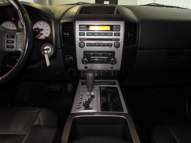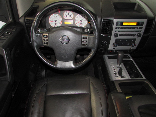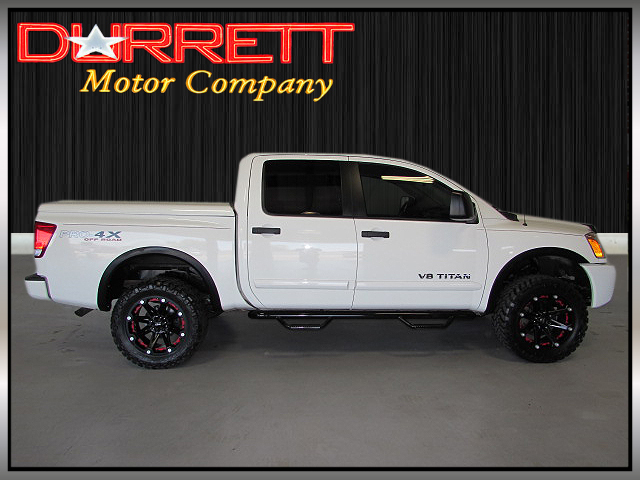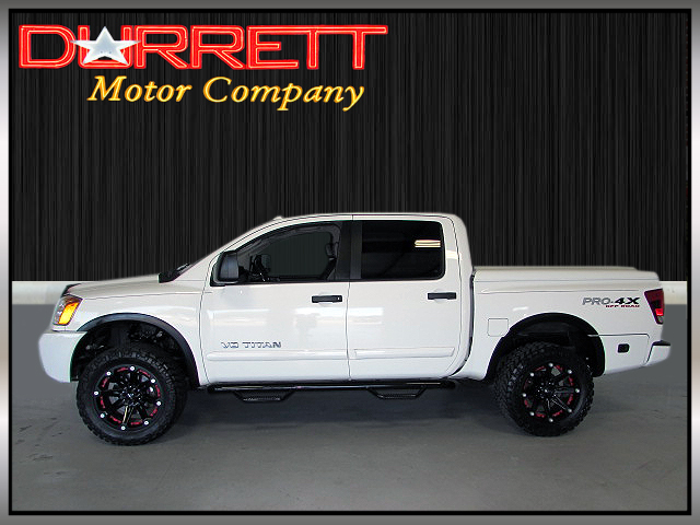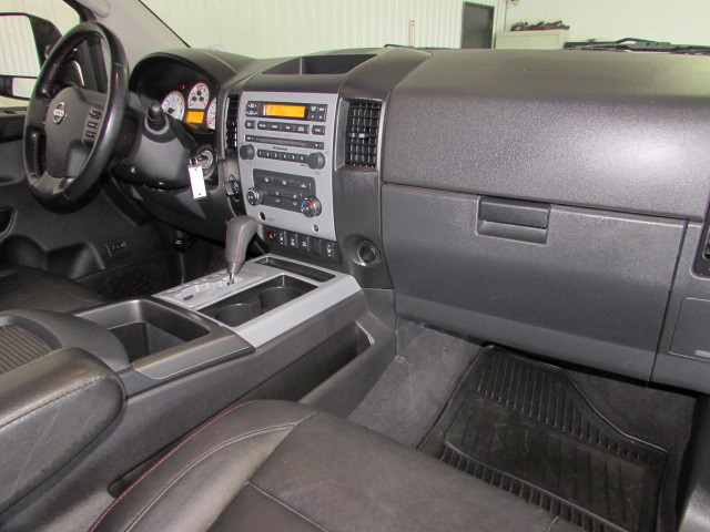 CHECK OUT THIS KILLER TITAN 4X4 CREW CAB! PRO-4X OFF ROAD PACKAGE, LEATHER BUCKETS, LIFT KIT, 20BALLISTIC BLACK RIMS ON 305/55-20 NITTO GRAPPLER TIRES, DVD/TV REAR ENTERTAINMENT SYSTEM, POWER SLIDING REAR WINDOW, SPRAY IN BED LINER, DUAL POWER SEATS, BUDDY BARS/RUNNING BOARDS, ROCKFORD FOSGATE SOUND SYSTEM WITH 6 DISC CD CHANGER/SATELLITE RADIO, HEATED SEATS, MATCHING FIBERGLASS BED COVER. 1-OWNER, SERVICE RECORDS, PERSONAL VEHICLE, NO ACCIDENTS, AND A PERFECT CARFAX. THIS IS A VERY WELL KEPT, VERY CLEAN NISSAN CREW CAB. STOP BY AND TAKE A LOOK AT A NICE ONE