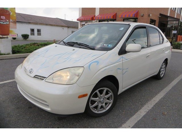 2003 Toyota Prius Hybrid Hybrid 4dr Sedan (1.5l 4cyl) with Wht Metallic Exterior, Grey Interior.  Loaded with 1.5L Hybrid I4 Engine, Automatic Transmission, Cloth Seats, Cruise Control, Audio Steering Wheel Control, AM/FM/CD Changer Audio System, Power Windows, Power Door Locks, Power Exterior Mirrors, Rear Spoiler,  Alloy Wheels and more. Battery replaced on rebuild one, so keeping the charge very good. Professional Paint Air Graphic on the front! Very nice, clean and economy car!