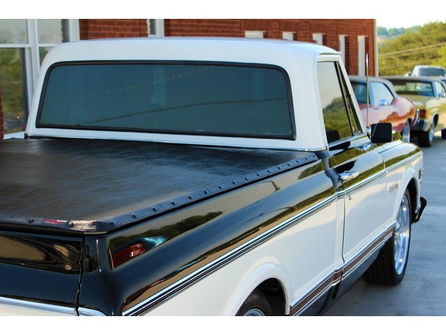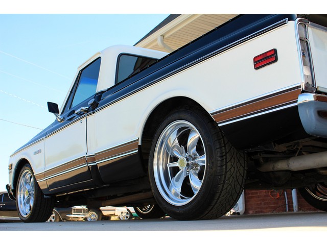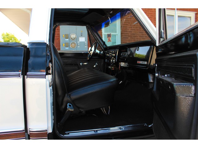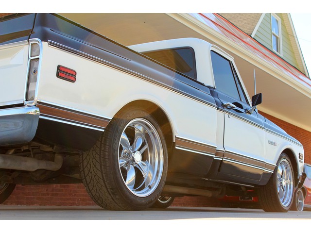 We will start off with the exterior of the Cheyenne. The body on this truck looks rock solid with great lines and arrow straight panels. It’s done in the two tone paint scheme with the Tuxedo Black and the White down the sides and top. It looks fresh with a deep rich shine and a slick finish. The stainless is all new on the sides as well as a new grill and inserts. Also, the bumpers have been replaced. At the time of the repaint new weather stripping was added. The help update the pickup and give it a killer look it has a new set of 20” American Wheels and spinner with a new set of tires.