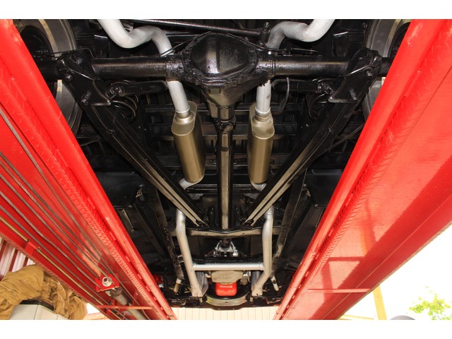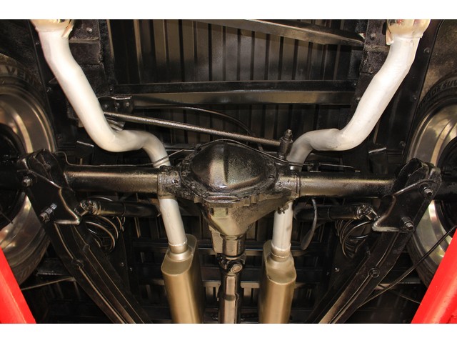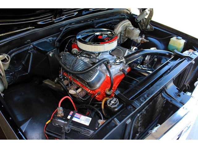 Finally we will take a look at the heartbeat of the Chevy. Under the hood it is very neat and clean. It features a 454 V8 that is mated to a 400 Turbo Trans and 12 Bolt Rear End. The engine has had a few upgraded like and aftermarket cam, aluminum intake, Holley Carb, aluminum valve covers, and a chrome breather. The exhaust has also been upgraded to headers and flow. To keep it running cool it has the 4 core radiator. Also, it comes with Power Steering and Power Disc Brakes. When you look under this pick up all the frame looks solid as well as the floor pans and bed bottom.