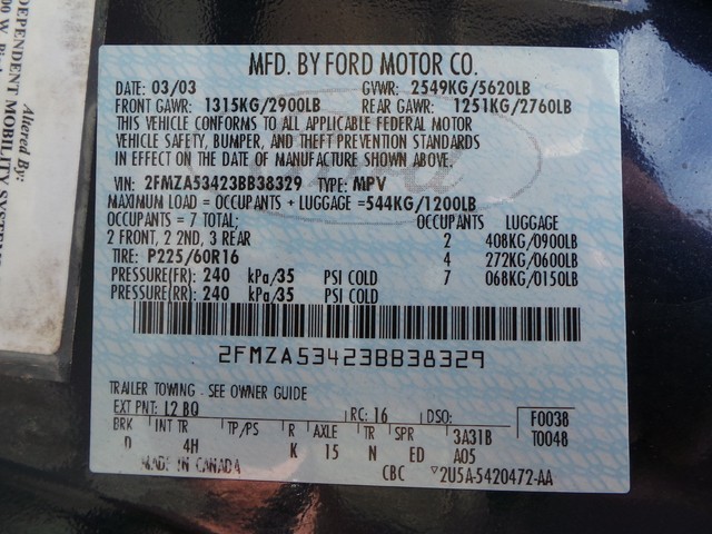 • VIN: 2FMZA53423BB38329