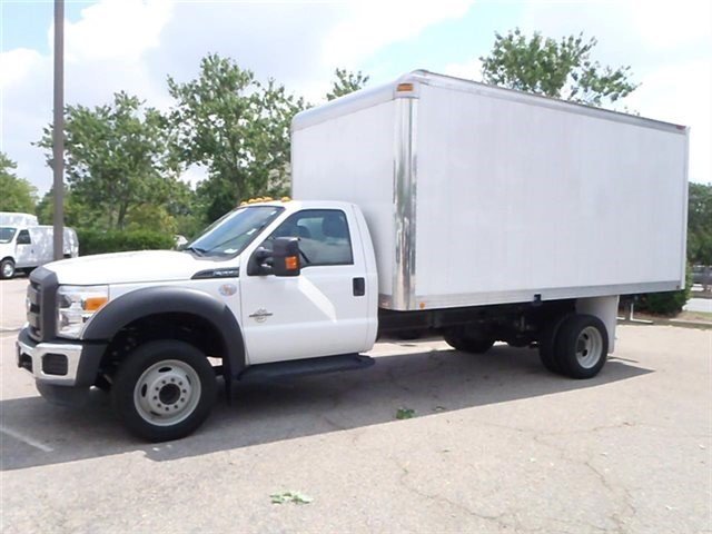 This 2012 Ford Super Duty F-550 DRW 16Ft. BOX Truck features a 6.7L 8 Cylinder Engine 8cyl Diesel engine. It is equipped with a Automatic transmission. The vehicle is White with a Gray Vinyl interior. It is offered with the remaining factory warranty. -