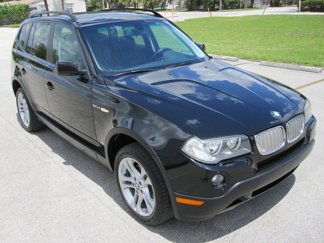 2007 BMW X3 3.0si AWD ALL WHEEL DRIVE SUV WITH SUPER LOW 79K FLORIDA MILES, 3.0L 6 CYL ENGINE, AUTOMATIC TRANSMISSION, ICE COLD AIR CONDITIONING, BLUETOOTH, POWER GLASS SUNROOF, SUPER NICE 18 INCH SPORT ALLOY WHEELS, IN DASH CD DISC PLAYER AND MORE. Up for auction a gorgeous looking in Schwarz Black exterior color BMW X3 3.0si AWD that has truly been well kept and maintained. This vehicle's history report shows it to be a two Florida owner vehicle! The mileage represented is the actual mileage of this vehicle. Clean smell throughout, appears to have never been smoked in. This vehicle has all of its original body parts and appears to have never been in an accident. It has a CLEAN AUTOCHECK vehicle history report! Other then a few minor paint chips (professionaly touched up) the exterior is flawless. We looked all over and found no door dings, obviously this vehicle is one of those vehicles you always see parked deep in the parking lots. To look this good, it is obvious that this beauty has been garaged. This vehicle's transmission shifts out nice and smooth from gear to gear. The engine is mechanically sound and can be driven anywhere with confidence. The elctrical and optional equipment on this vehicle has been checked to insure that it is all in working condition. The interior is clean and polished looking. Plan a trip or vacation to Florida and we will pick you up at the Ft Lauderdale airport only 15 minutes away.  Our staff is ready to answer all of your questions, please call us at 561-317-1916. Thank you for reading and Good Luck!
