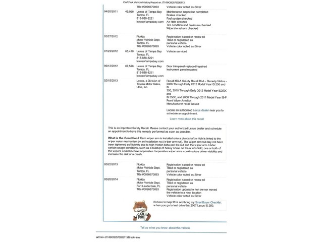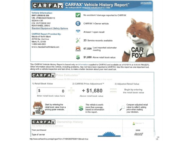 2007 IS 250 CARFAX CERTIFIED ONE FLORIDA OWNER EXCELLENT CONDITION SUPER SHARP