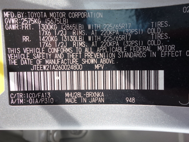 • VIN: JTEEW21A260024800