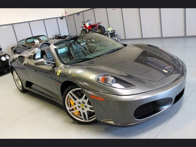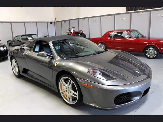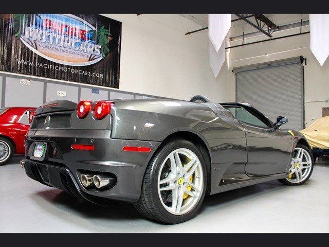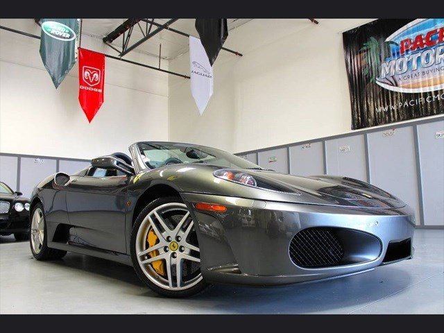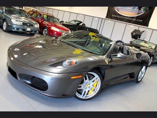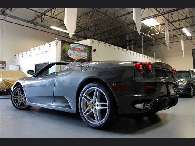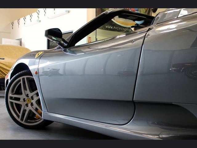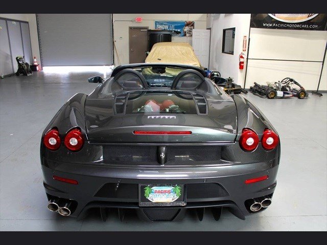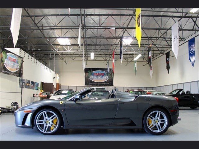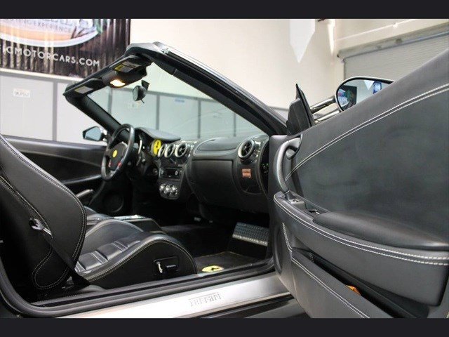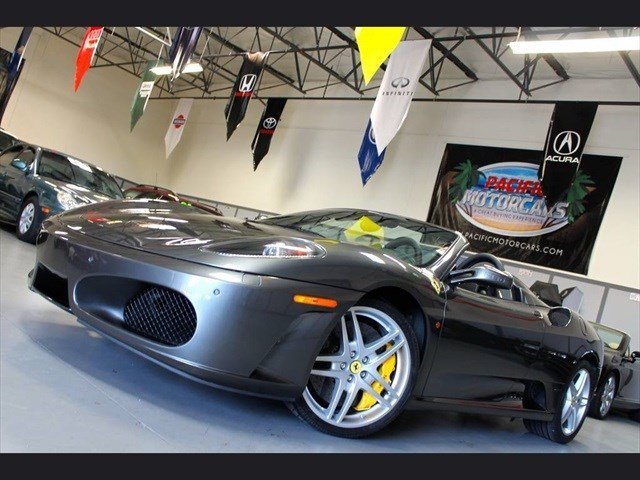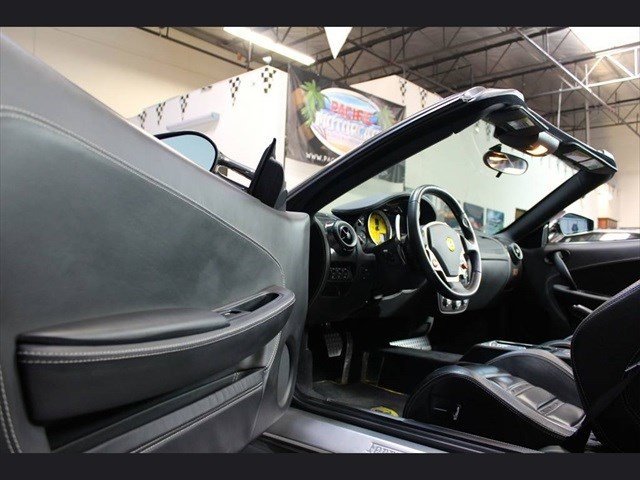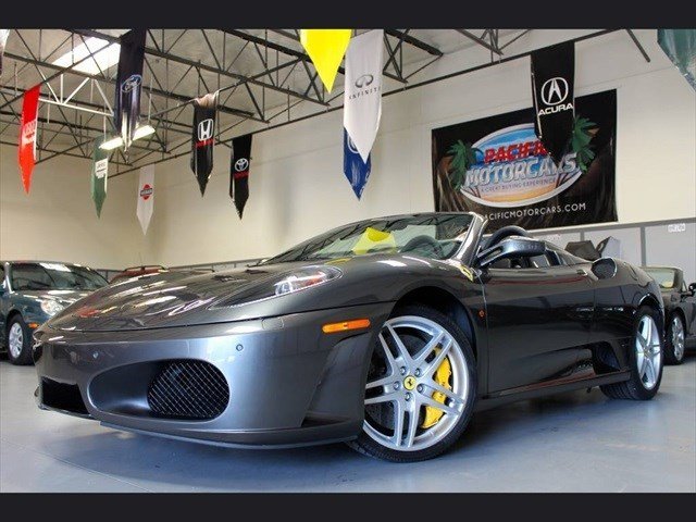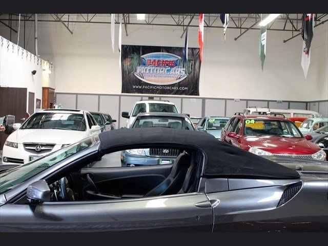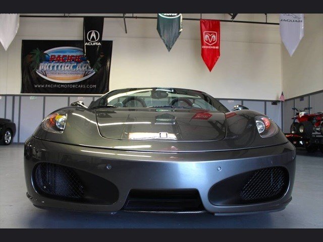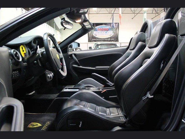 Showroom Condition 2008 Ferrari F430 Spyder presented by Pacific Motorcars!! Best looking package around with beautiful Grirgio Silverstone Metallic and Nero Leather interior!! Regularly maintained and garaged!! California owned and driven! 08 had a few changes to the ECU and stock Carbon Ceramic brakes, Loaded with every option: Scuderia Ferrari Shields, Daytona Seats, Carbon Ceramic Brakes, Yellow Brake Calipers, Front and Rear Proximity Sensors, Navigation, Carbon Fiber Rear Moulding, iPod Connection, and much more!! ADDED features: BRAND new Pirelli Tires, Front Carbon Fiber Splitter, Chrome Exhaust Tips, OEM Ferrari F430 car cover, Clear Bra Installed on: complete front end, Rocker Panels, and Mirrors. 70% remaining on clutch. All Books and Manuals included! CLEAN CARFAX, NON-SMOKER! Pacific Motorcars confidently guarantees this vehicle with a 30 day/1000 mile FREE Limited Warranty! Request for PMC live: a webconference vehicle walkaround live over the internet! *Price is based off of cash price, financing charges may apply* For more information and additional photos, visit pacificmotorcars.com -- INSTALLED FEATURES: Bumper color: body-color, quad exhaust tips, Mirror color: body-color, Rear spoiler: lip, Cargo area light, Center console trim: alloy, Dash trim: alloy and leather, Door trim: alloy and leather, Floor Material: carpet, Front air conditioning zones: single, Front air conditioning: climate control, Front headrests: adjustable, Front headrests: integra