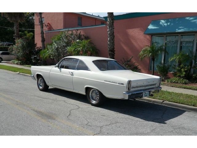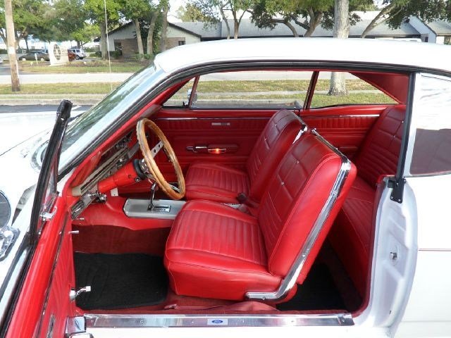 1966 Ford Fairlane 500XL For Sale. Upgraded 302 cubic inch V8, automatic transmission, power steering, A/C, dual exhaust, 14 GT style wheels with red line tires, white exterior with accenting red pinstripe, red bucket seat interior, center console with floor shift, wood grain steering wheel, upgraded 3rd brake light. This classic Ford runs and drives very nice, don't miss it!!!