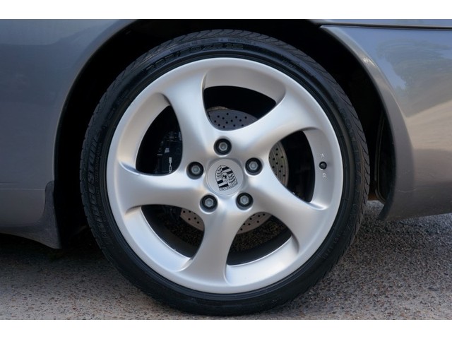 The Gray exterior color is in GREAT condition, with no signs of major abuse. There is no door dings, or dents on this 911. There is a few minor touched up blemishes on the front hood.  It is well maintained and above average condition wise.  The Interior as shown in the pictures, is in Great condition!  Black Leather Seats look immaculate.  Everything looks Clean inside. Headliner, and Dash have no damage and is in clean condition.  225/40ZR18 front tires and 285/30ZR18 rear Bridgestone tires are  Good Condition.  There is a few curb rashes on the wheels. For the year model this vehicle is in, this Porsche is above average mechanically and conditionally.