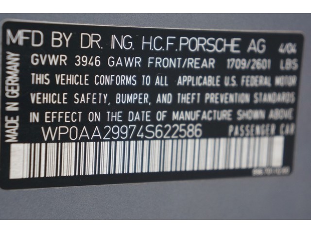 • VIN: WP0AA29974S622586