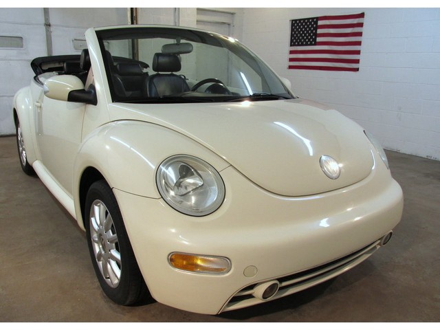 You are looking at a beautiful VW New Beetle convertible with great color combination, off white and black. It has 5-speed manual transmistion. *1-OWNER*  LOW MILES with only 43k orginal miles. It has clean title and history.  This convertible has LEATHER  INTERIOR & HEATED SEATS GREAT AUDIO SYSTEM WITH 6CD-CHANGER. Car runs great like new without any issues & could be confidently driven anywhere. Transmission shifts smooth and car runs with full power and smooth. All lights on the dash work fine and none of the service indicator light is on. A/C blow  cold air.  All electrical equipment on this vehicle works fine, all power windows slide up and down without any problem. It has jet black convertible roof. Convertible roof opens and closes smoothly without any issues & is very clean without any stains,rips or tears.  Breaks are good and bring the car to a complete and quick stop. Exterior of this convertible is in very clean condition and has all shinny paint. You may find some minor scraches and touch ups normal to the age and use of the car.  Interior is in very clean and good condtion. Carpet is in very good conditon without any rips or tears may find normal wear to the age of the car.  Please see  all pictures and read notes for evaluation of exterior and interior cosmetics.  This convertible is mechanically strong and could be confidently driven across country today.
