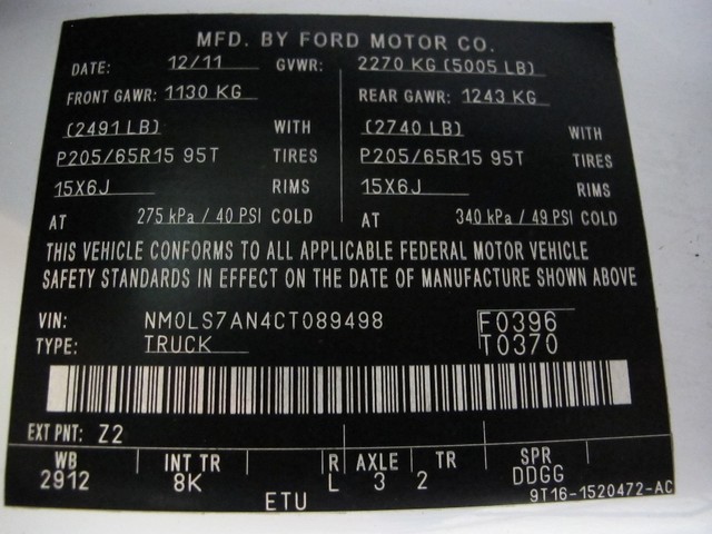 2012 FORD TRANSIT CONNECT XLT CARGO VAN DELIVERY VAN ASTRO VAN ECONOLINE RESERVE