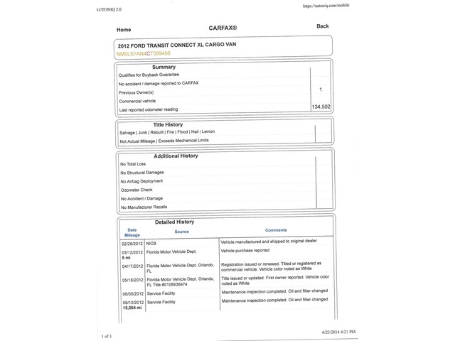 *Clean Carfax showing this van has never had damage or been in an accident and that is also a ONE OWNER van. Please see below in the pictures for a copy of it.