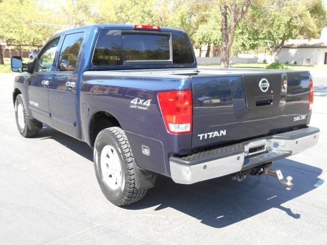 06 Nissan Titan Crew Cab SE V8 5.6L with only 117K miles. 4X4 Crew Cab! Well Maintained! Brand New Tires! Ice Cold A/C! Ready for Work and Play! Here at Good Car Company we are excited to offer up this 4X4 Titan that comes loaded with Power windows and locks, Cruise control, Tow Package, Bed Liner, Alloys, OFF-Rd Pkg, Power Seat, Parking sensors and more. Please don't hesitate to call with any questions. Financing options available for all types of credit/Trades Welcomed! Easy online credit apps and complete inventory with additional pictures can be viewed at www.goodcaraz.com or just give us call (480) 969-3850. Family Owned and Operated. Never any games or gimmicks, just car & truck buying made easy. -- INSTALLED FEATURES: Skid Plate(s), Adjustable Rear Headrests, Cargo Area Light, Front Headrests: Adjustable, Center Console: Front Console With Storage, Cruise Control, Cupholders, Power Outlet(s): Front, Power Steering, Retained Accessory Power, Steering Wheel Mounted Controls: Cruise Controls, Steering Wheel: Tilt-Adjustable, Storage: Cargo Tie-Down Anchors and Hooks, Storage: Door Pockets, 4WD Type: Part Time, ABS: 4-Wheel, Axle Ratio: 2.94, Four Wheel Drive, Electronic Brakeforce Distribution, Front Brakes: Ventilated Disc, Front Suspension Classification: Independent, Front Suspension Type: Double Wishbones, Pickup Bed Type: Fleetside, Pickup Truck Sliding Rear Window: Power Horizontal, Rear Brakes: Disc, Rear Suspension Classification: Solid Live Axle, Stabilizer Bar(s