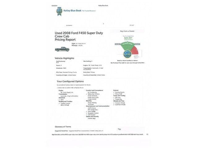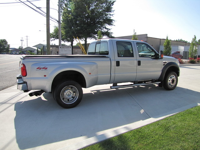 This is a great previously owned 2008 ford f450 CREW CAB TURBO DIESEL DUALLY  4x4 OFF ROAD   TRUCK .  DUAL REAR WHEELS ! NAVIGATION SYSTEM ! DVD ! RUNNING BOARDS !  3 months /3000 miles powertrain WARRANTY ! There is no damage evident on this vehicle.The engine on this vehicle is running properly.The mileage represented on this vehicle is accurate.There are no signs of prior damage on this vehicle.This vehicle has a smooth shifting transmission.All power equipment is functioning properly.Overall, this vehicle's exterior is clean.The interior is clean and in good condition.There is approximately 85% of the tire tread remaining.