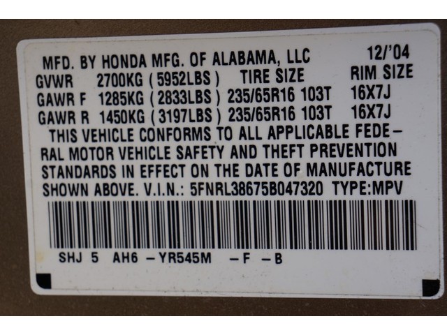 The Gold exterior color is in GREAT condition, with no major signs of abuse at all.  There is no nick, dings, or dents on this Honda.  Overall this is a very sharp looking vehicle. The Interior as shown in the pictures, is in Great condition!  We can assure you the interior looks very nice and clean. Everything else looks fresh inside. Leather seats, dash, and headliner looks Great, with no damage!   235/65R16 Yokohama tires are in great condition.