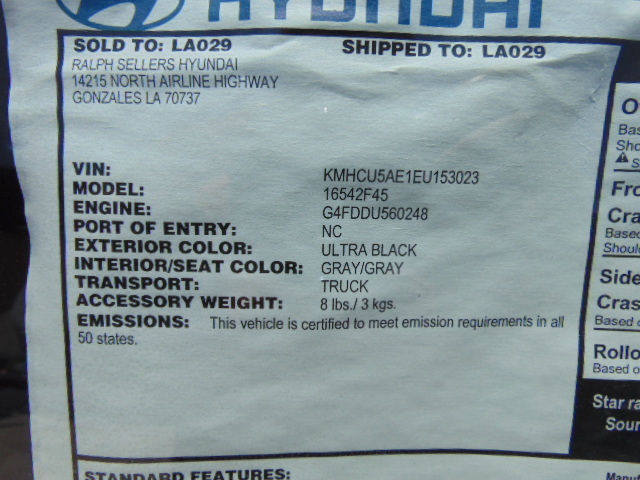 • VIN: KMHCU5AE1EU153023