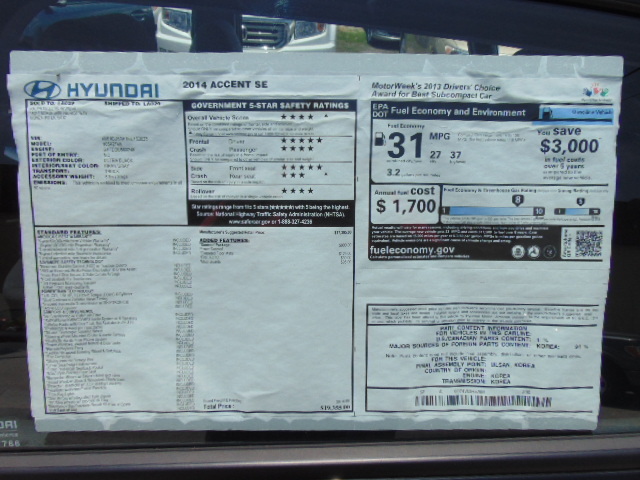 *MEGA DEAL* 2014 ACCENT SE - ONLY 136 MILES - SUNROOF PKG - AUTOMATIC -BLUETOOTH