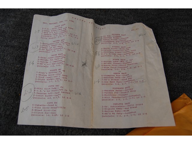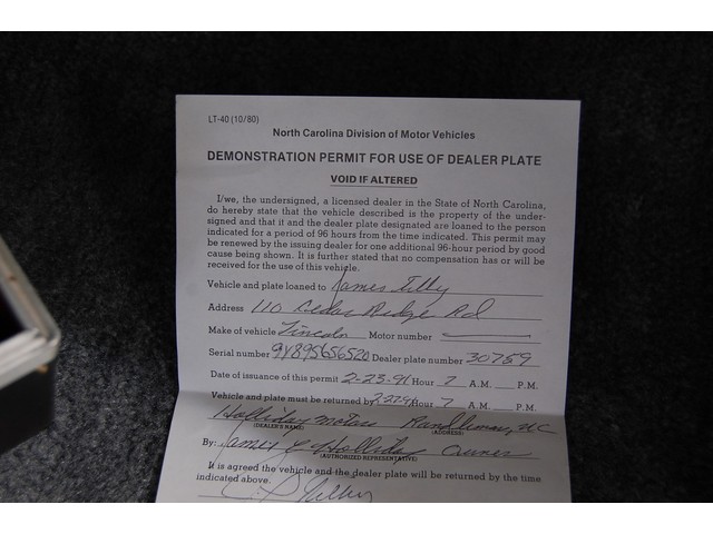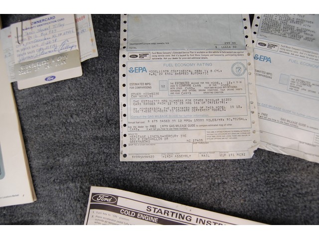 This Mark is sitting on what I was told is the original tires.  They are still in great shape but do have a little vibration when driving.  Because they are original and still look great I decided it was wise to keep this car as factory as possible.  I have a bunch of original paperwork with this car including two window stickers, the original ownership card, some other documents in Mr. Tilleys name and several old registrations.  I also found a horse racing selection sheet and a program he left in the trunk.  The factory manuals are also still present.  The trunk retains the original spare, canister, and bumper jack assembly; they have never been used or removed.  I don't think this car has ever been professionally detailed and it still looks and smells new.