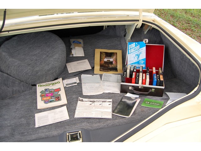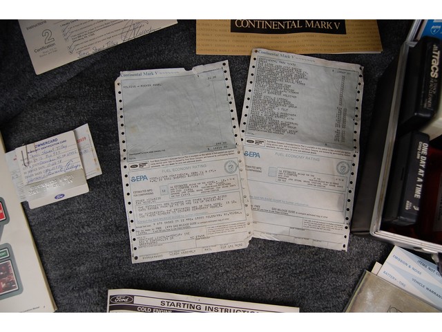In addition to all the creature comforts like 6-way power seats, A/C and power everything, etc..this Mark V was ordered with an abundance of factory options including: cream vinyl roof, custom paint stripes, illuminated entry system, headlamp convenience group, rear defroster, tilt steering wheel, cruise control, heated mirrors, reclining passenger seat, radio citizens band, AM/FM/8 Track, factory CB Radio,  interval windshield wipers, gold/cream luxury group, interior light group, power lock convenience group, rocker panel moldings, and turbine spoke wheels.