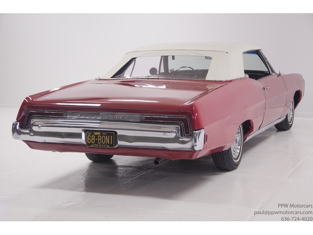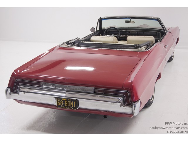 PPW Motorcars is pleased to offer this beautiful 1968 Pontiac Bonneville Convertible that was beautifully ordered in the classic and highly desirable Solar Red with a brand new Bright White Top over a Parchment Interior in Original Condition! Based on condition and originality, this beautiful example of one of the most iconic motorcars of the 60’s is believed to just have 55,346 original miles!