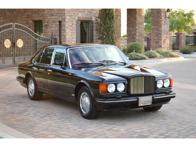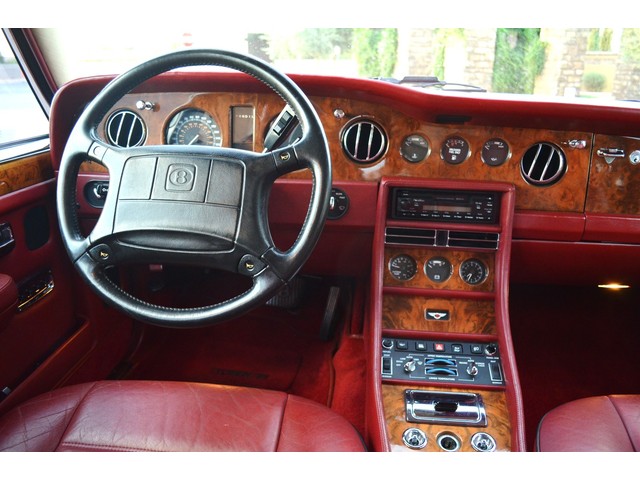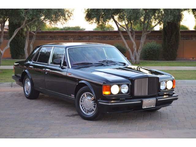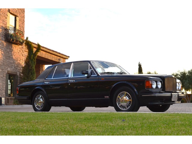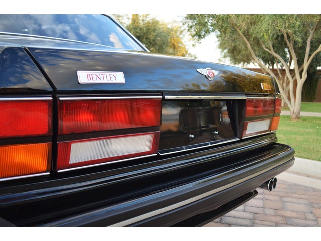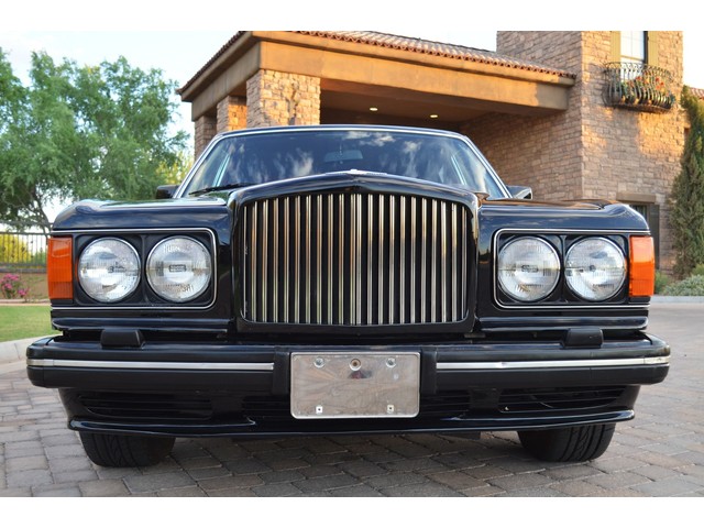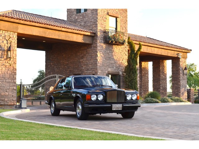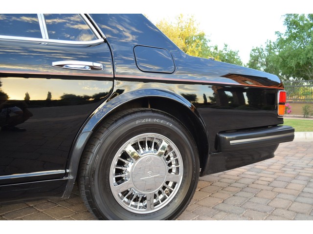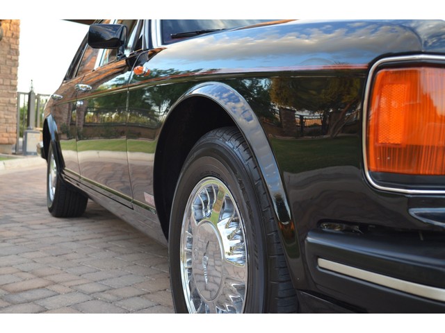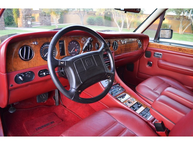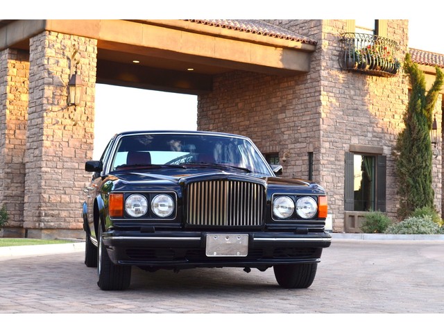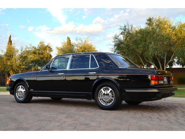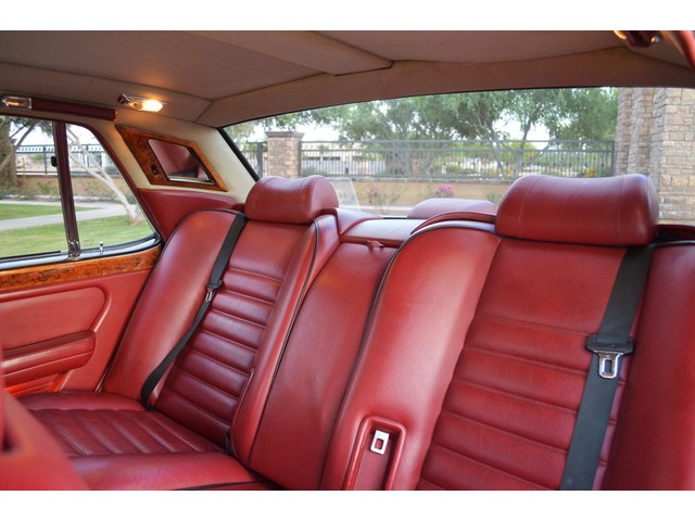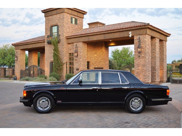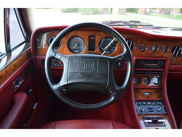 European Motor Studio is proud to offer this gorgeous 1990 Bentley Turbo R Saloon finished in Masons Black over Burgundy Hides with contrasting Masons Black piping. This beautiful Turbo R Saloon left the Crewe production line in July of 1989 and was invoiced to Rolls Royce/Bentley North America. The car was then delivered to Steingold Bentley/Rolls Royce where it sold to its first owner in late 1989. The car then moved to Alabama with the second owner in 1995 who has had the car ever since European Motor Studio brought the car to Arizona. The Masons Black paint finish on the car is still in excellent condition showing a beautiful deep luster free from any major scratches, or defects (just a few tiny stone chips in the front of the nose). The body of the car is in outstanding condition and is laser straight and free from any damage, rust or corrosion. All of the chrome and exterior trim are still in excellent condition and free from any damage or fade (small ding on the front drivers side bumper guard).  The Burgundy hides are all original and in beautiful condition with excellent patina to them. The driver and passenger seats show minimal wear and creasing but absolutely no heavy cracking, scuffing or tears at all. The backseats are in excellent condition showing no real signs of use and all of the carpets are in fantastic unstained condition. The headliner is stain and damage free as is the leather dash top, center console and door panels (small bit of leather just starting to peel back from the windshield). All of the wood veneer is in excellent condition showing almost no signs of wear (just a couple tiny hairline cracks) and all of the interior chrome and switchgear are in excellent unmarked condition. The 6.75 litre Bentley eight cylinder starts right up and idles beautifully without any issues. The car does not smoke under start up and does not smoke under acceleration. This Bentley shifts into gear with ease and accelerates through all of the gears without any issues. The cars steering is very solid and precise and does not drift, pull or vibrate at any speeds. The brakes feel very solid and responsive and do not show any signs of fade or squeaking. The suspension is very firm but smooth and free from any clunking or noises. The hydraulic rear end raises itself up as designed and keeps at a level ride height. The car has just had a full service including all of the plugs, injectors, brake accumulators and spheres, and the fluids and filter. All four tires were replaced at the end of 2011 and have only had about 1,000 miles on them. All of the electronics are working as designed, the radio and power antenna, all four windows, the door locks, the power seats and heated seat warmers, the AC and heater, all of gauges, all of the interior lights and dash lights and all of the exterior lights are all working as designed. The factory Bentley chrome wheels are in outstanding condition and free from any curb rash or damage. The car has its original Bentley spare tire, jack and jack tools, original Bentley tool kit, and all of its original owners manuals, warranty books, service books which are stamped by the dealership Bentley keys and remote , original rear seat foot rests, and a clean and clear box A actual miles title. This is a beautiful Turbo R Saloon which came from a time where money was absolutely no object in the process of building and hand assembling cars. These are getting rarer and harder to come by in excellent condition that have been well looked after and maintained.