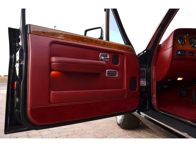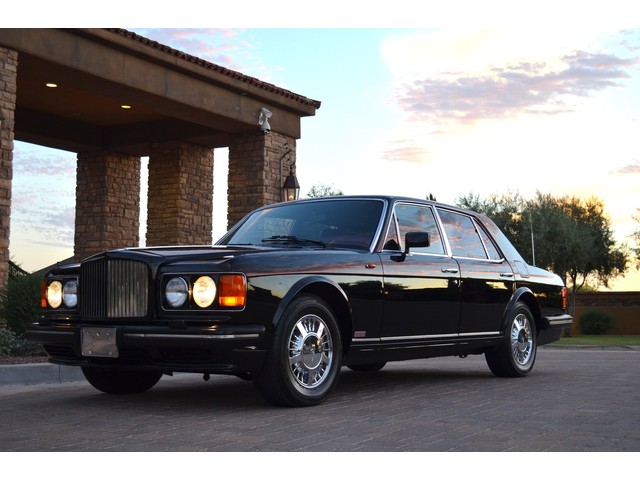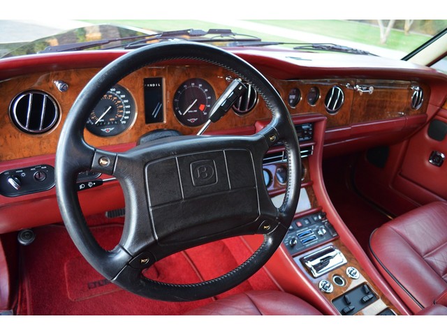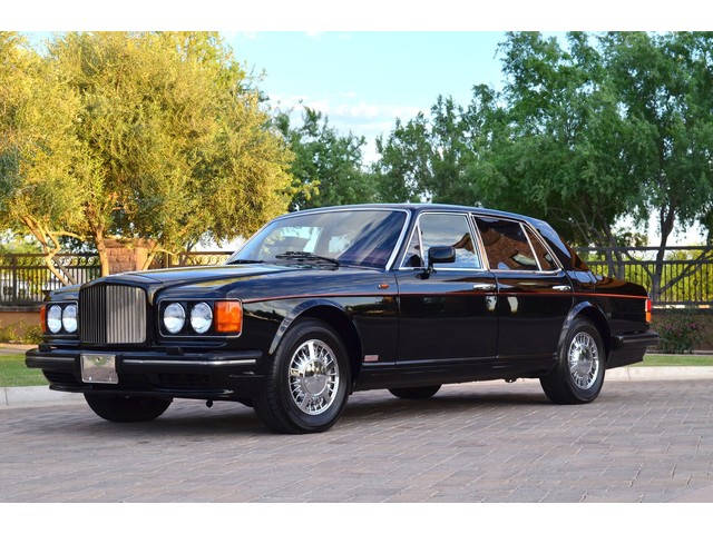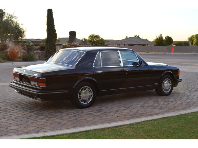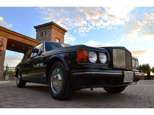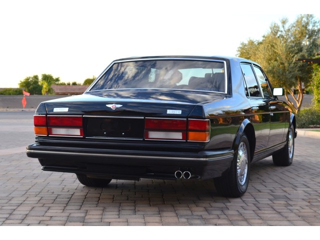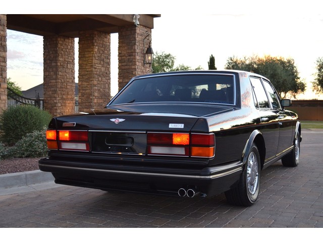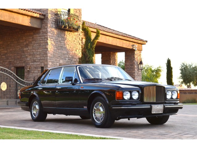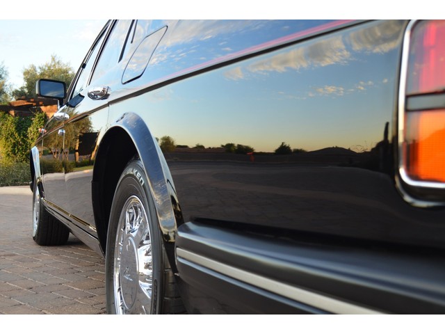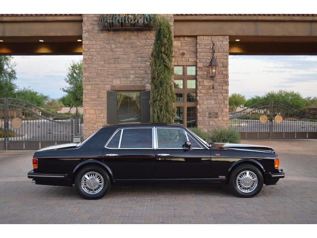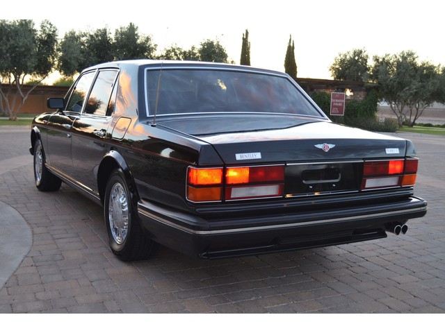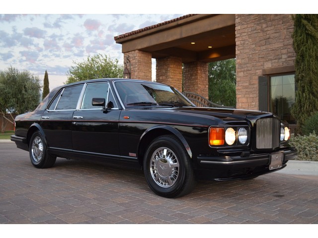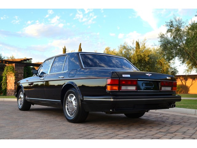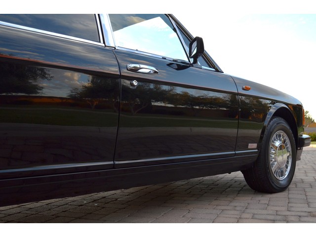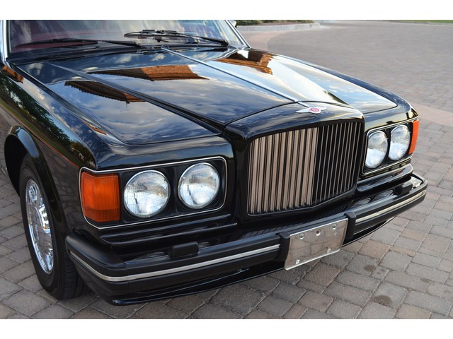 European Motor Studio is proud to offer this gorgeous 1990 Bentley Turbo R Saloon finished in Masons Black over Burgundy Hides with contrasting Masons Black piping. This beautiful Turbo R Saloon left the Crewe production line in July of 1989 and was invoiced to Rolls Royce/Bentley North America. The car was then delivered to Steingold Bentley/Rolls Royce where it sold to its first owner in late 1989. The car then moved to Alabama with the second owner in 1995 who has had the car ever since European Motor Studio brought the car to Arizona. The Masons Black paint finish on the car is still in excellent condition showing a beautiful deep luster free from any major scratches, or defects (just a few tiny stone chips in the front of the nose). The body of the car is in outstanding condition and is laser straight and free from any damage, rust or corrosion. All of the chrome and exterior trim are still in excellent condition and free from any damage or fade (small ding on the front drivers side bumper guard).  The Burgundy hides are all original and in beautiful condition with excellent patina to them. The driver and passenger seats show minimal wear and creasing but absolutely no heavy cracking, scuffing or tears at all. The backseats are in excellent condition showing no real signs of use and all of the carpets are in fantastic unstained condition. The headliner is stain and damage free as is the leather dash top, center console and door panels (small bit of leather just starting to peel back from the windshield). All of the wood veneer is in excellent condition showing almost no signs of wear (just a couple tiny hairline cracks) and all of the interior chrome and switchgear are in excellent unmarked condition. The 6.75 litre Bentley eight cylinder starts right up and idles beautifully without any issues. The car does not smoke under start up and does not smoke under acceleration. This Bentley shifts into gear with ease and accelerates through all of the gears without any issues. The cars steering is very solid and precise and does not drift, pull or vibrate at any speeds. The brakes feel very solid and responsive and do not show any signs of fade or squeaking. The suspension is very firm but smooth and free from any clunking or noises. The hydraulic rear end raises itself up as designed and keeps at a level ride height. The car has just had a full service including all of the plugs, injectors, brake accumulators and spheres, and the fluids and filter. All four tires were replaced at the end of 2011 and have only had about 1,000 miles on them. All of the electronics are working as designed, the radio and power antenna, all four windows, the door locks, the power seats and heated seat warmers, the AC and heater, all of gauges, all of the interior lights and dash lights and all of the exterior lights are all working as designed. The factory Bentley chrome wheels are in outstanding condition and free from any curb rash or damage. The car has its original Bentley spare tire, jack and jack tools, original Bentley tool kit, and all of its original owners manuals, warranty books, service books which are stamped by the dealership Bentley keys and remote , original rear seat foot rests, and a clean and clear box A actual miles title. This is a beautiful Turbo R Saloon which came from a time where money was absolutely no object in the process of building and hand assembling cars. These are getting rarer and harder to come by in excellent condition that have been well looked after and maintained.