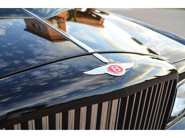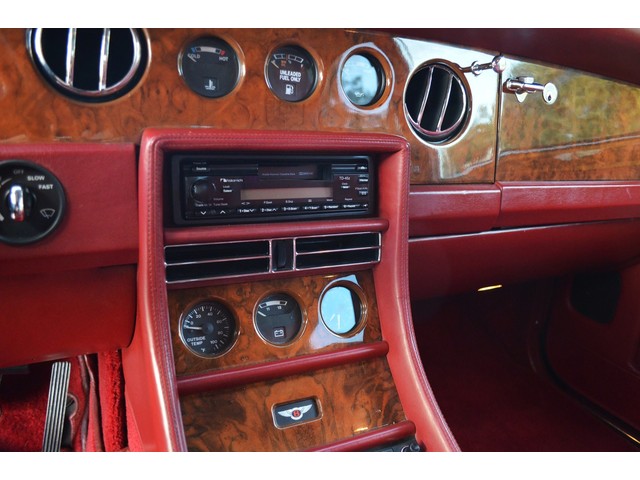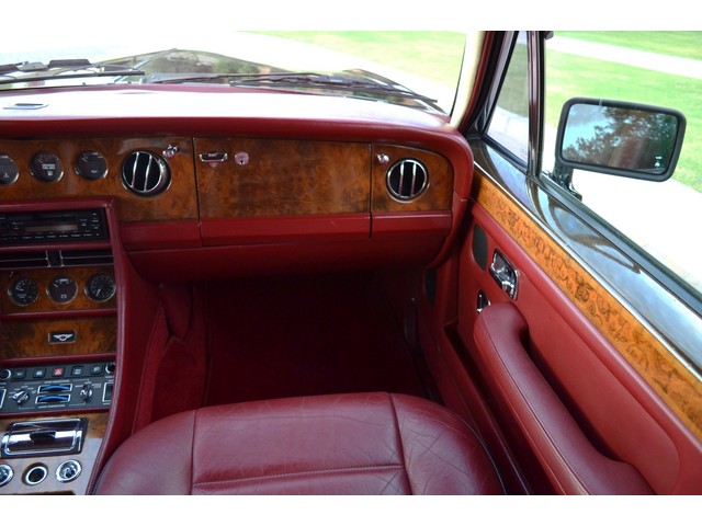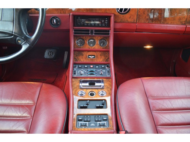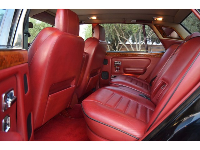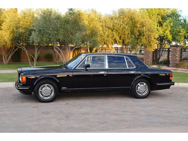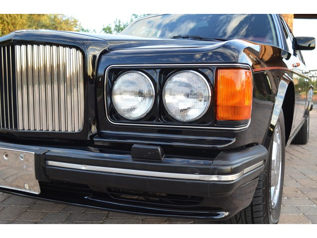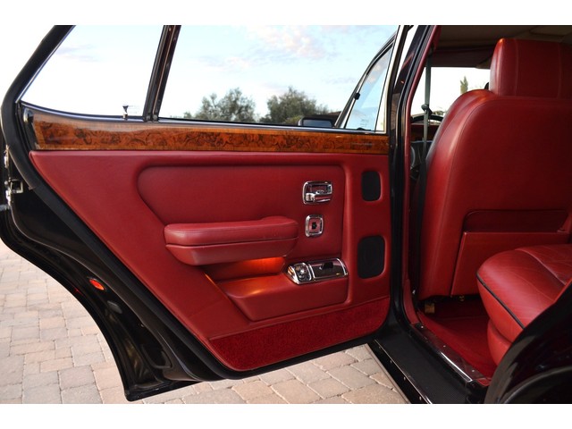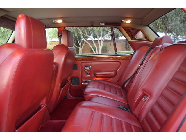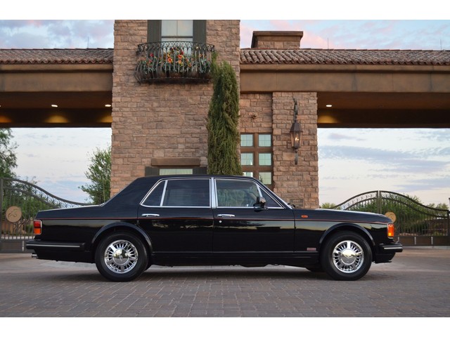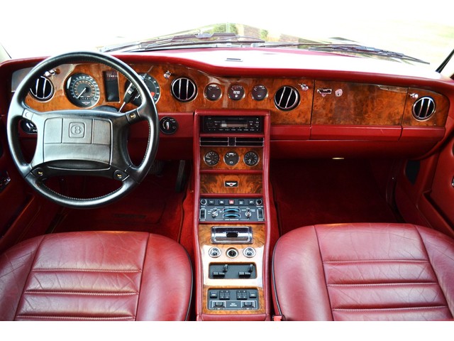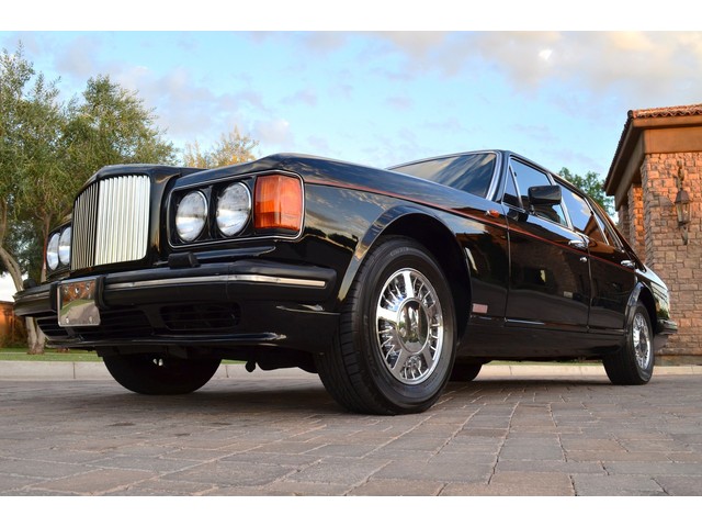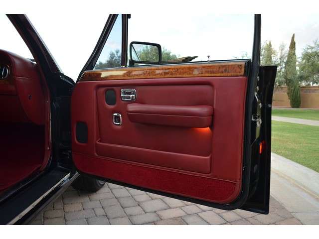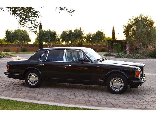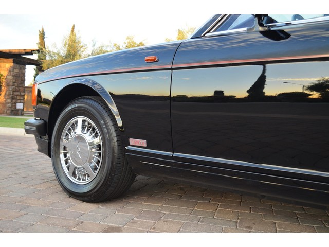 European Motor Studio is proud to offer this gorgeous 1990 Bentley Turbo R Saloon finished in Masons Black over Burgundy Hides with contrasting Masons Black piping. This beautiful Turbo R Saloon left the Crewe production line in July of 1989 and was invoiced to Rolls Royce/Bentley North America. The car was then delivered to Steingold Bentley/Rolls Royce where it sold to its first owner in late 1989. The car then moved to Alabama with the second owner in 1995 who has had the car ever since European Motor Studio brought the car to Arizona. The Masons Black paint finish on the car is still in excellent condition showing a beautiful deep luster free from any major scratches, or defects (just a few tiny stone chips in the front of the nose). The body of the car is in outstanding condition and is laser straight and free from any damage, rust or corrosion. All of the chrome and exterior trim are still in excellent condition and free from any damage or fade (small ding on the front drivers side bumper guard).  The Burgundy hides are all original and in beautiful condition with excellent patina to them. The driver and passenger seats show minimal wear and creasing but absolutely no heavy cracking, scuffing or tears at all. The backseats are in excellent condition showing no real signs of use and all of the carpets are in fantastic unstained condition. The headliner is stain and damage free as is the leather dash top, center console and door panels (small bit of leather just starting to peel back from the windshield). All of the wood veneer is in excellent condition showing almost no signs of wear (just a couple tiny hairline cracks) and all of the interior chrome and switchgear are in excellent unmarked condition. The 6.75 litre Bentley eight cylinder starts right up and idles beautifully without any issues. The car does not smoke under start up and does not smoke under acceleration. This Bentley shifts into gear with ease and accelerates through all of the gears without any issues. The cars steering is very solid and precise and does not drift, pull or vibrate at any speeds. The brakes feel very solid and responsive and do not show any signs of fade or squeaking. The suspension is very firm but smooth and free from any clunking or noises. The hydraulic rear end raises itself up as designed and keeps at a level ride height. The car has just had a full service including all of the plugs, injectors, brake accumulators and spheres, and the fluids and filter. All four tires were replaced at the end of 2011 and have only had about 1,000 miles on them. All of the electronics are working as designed, the radio and power antenna, all four windows, the door locks, the power seats and heated seat warmers, the AC and heater, all of gauges, all of the interior lights and dash lights and all of the exterior lights are all working as designed. The factory Bentley chrome wheels are in outstanding condition and free from any curb rash or damage. The car has its original Bentley spare tire, jack and jack tools, original Bentley tool kit, and all of its original owners manuals, warranty books, service books which are stamped by the dealership Bentley keys and remote , original rear seat foot rests, and a clean and clear box A actual miles title. This is a beautiful Turbo R Saloon which came from a time where money was absolutely no object in the process of building and hand assembling cars. These are getting rarer and harder to come by in excellent condition that have been well looked after and maintained.
