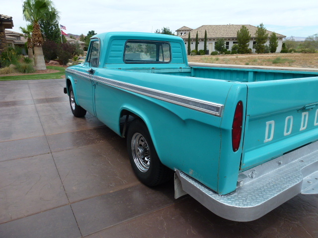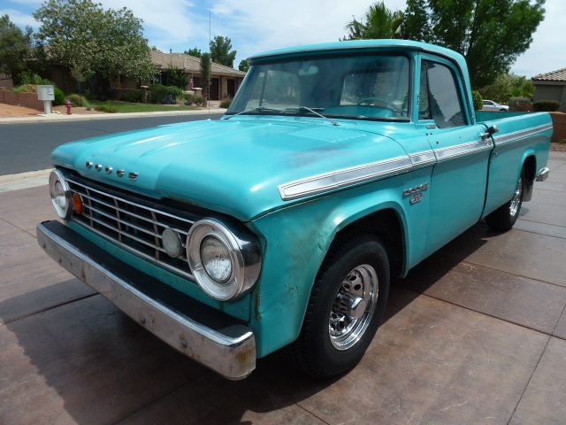 Wow this is one nice old  1966 Dodge Pickup truck. The overall condition of this classic is amazing. The old truck fires right up and purrs like a kitten. Runs cool and Drives straight and true. It has drum style brakes but they are in great working order and stop straight and true. It has the origional numbers matching 318CI V8 motor and has the origional automatic transmission that shifts nicely. It runs cool with no overheating problems. Most all of  the lights work. (I am not sure if the mileage is original but it appears to be a very low mileage truck). No major oil leaks!!! Tires appear to be in good condition with later model chrome wheels. The truck resides in the dry southwest corner of Utah just 100 miles north of Las Vegas NV.  This classic truck can be enjoyed the way it is as a daily driver or you could take it to the next level of restoration. I don't know what else to say other than this is a great unmolested all origional old truck. These old classic trucks are getting harder and harder to come by so why drive a newer vehicle that will just depreciate. These classic trucks are like having money in the bank. Please call with any other questions