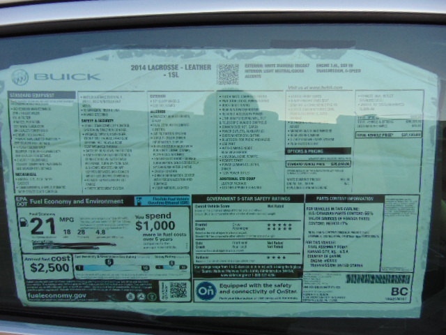 *SUPER SAVER* 2014 LACROSSE V6 LEATHER 1SL - WHITE DIAMOND ON COCOA -