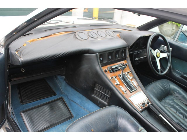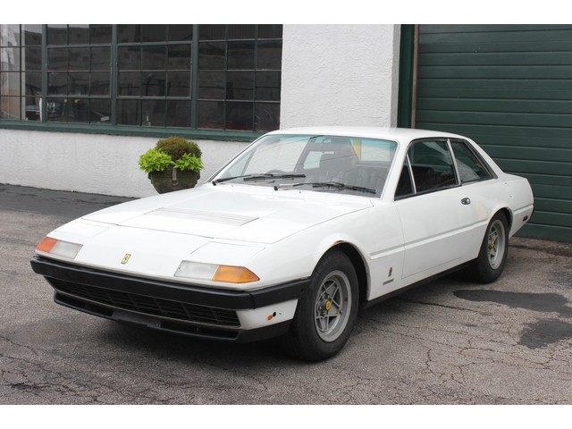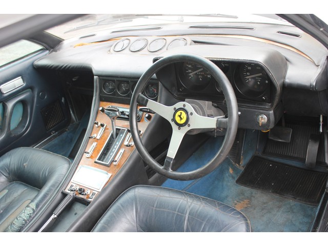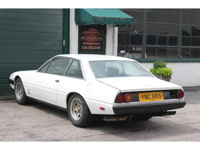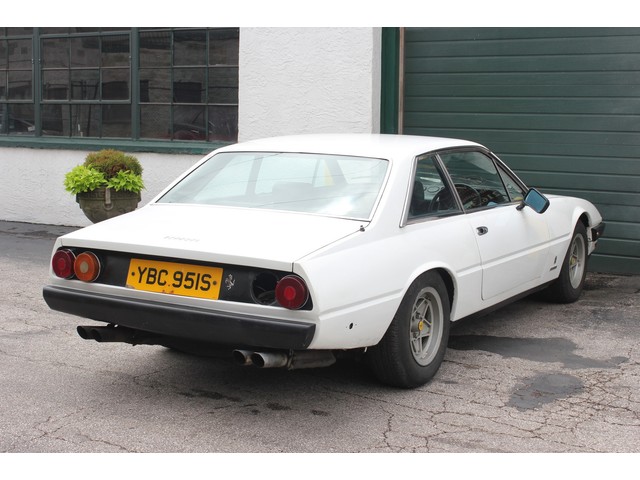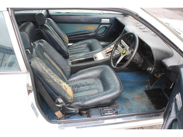 A 1978 Ferrari 400GT 2+2. Very rare right hand drive, automatic. 75,000 miles. White with a blue leather interior. Just came out of a long term ownership. Very straight body, does have some rust bubbles by the rear windshield and by the rear wheel arches and the two front rails underneath as you can see one of the underneath pictures. The original interior is showing its age, there are some cracks on the dashboard and the back of the driver’s seat. The rear seat is fine. The car runs and drives good considering it sat in indoor storage for a while. Comes with the original owner’s manual and some old service records as well as the spare tire.