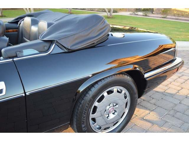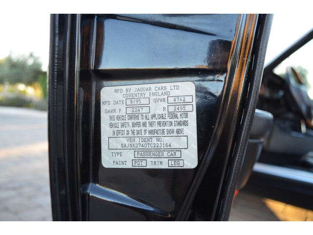 European Motor Studio is proud to offer this gorgeous 1996 Jaguar XJS Celebration Edition Convertible finished in a rare color combination of Black over Warm Charcoal hides and a Black canvas top. This Celebration Edition XJS left the Coventry Browns factory in August of 1995 and was then invoiced to Jaguar Cars North America. The car was then sent to Jaguar in Massachusetts where it was leased by its first owner on September 15, 1996. The first owner bought the car out of the lease in April of 2000 and then sold the car to the second owner in June of 2001 when the second owner took the car to Los Angeles California where it has been ever since. This XJS is the Celebration Edition which marks the end of a long run of very traditional Jaguar’s GT cars. 1996 was the final year for the XJS and some say the very end of an era. The Celebration Edition XJS was fitted with contrasting piping on the leather upholstery with Jaguar leapers embossed in the headrests, a wood and leather wrapped steering wheel and shift knob and Diamond turned slotted Aerosport wheels. This XJS has a beautiful Black paint finish and free from any sun fade or clear coat peeling. There are no major scratches and no damage to the body anywhere. The car is free from any rust or corrosion and any signs of accident damage. There are only a few tiny stone chips in the front nose and one hairline crack in the lower portion of the front skirt which is hardly noticeable. All of the exterior chrome and trim is in excellent condition showing very minimal age and the car has a brand new set of tires on all four corners. The original Jaguar chrome wheels are in excellent condition and unmarked. The original Warm Charcoal leather interior still shows beautifully with excellent patina and very light creasing on the front seats. The back seats show no wear whatsoever (there are two spots on the back of the rear headrests where the convertible top comes down that have tears). The switch gear and the interior chrome and trim all look to be in excellent condition with minimal wear. The convertible top is in excellent condition and shows no signs of wear on either the top or the headliner. All of the mechanicals are in excellent condition, the car starts right up and idles incredibly smooth and quiet. This XJS does not smoke or leak and is silky smooth under acceleration. The transmission shifts through all of the gears with ease and does not grind or clunk. The brakes feel excellent and solid and do not show any signs of fade or grinding. The suspension both front and rear is in excellent condition and is very smooth and tight free from any noises or thumping. The steering is very solid and tight and does not drift or pull to any side. All of the electronics in the car are working properly, the interior lights, all of the exterior lights, dash lights, AC, heater, power windows, power door locks, windshield wipers, driver and passenger seats, original Jaguar remote, convertible top and rear windows are all functioning as designed. The original Jaguar Alpine sound system is still in the car and operating as designed along with the original Jaguar power antenna. The car comes with its original leather convertible top boot with its original bag, Jaguar spare tire and original jack in its original bag and the original drivers handbook. This XJS comes with a clean and clear box A actual miles title.