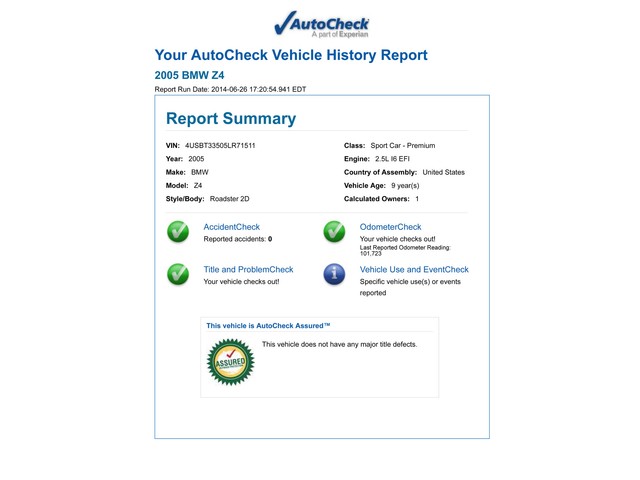 Here is a beautiful 2005 BMW Z4 Roadster with only 106k miles and a clear clean Carfax!  This car is loaded with dual power/ heated seats, power top, keyless entry, driver side memory seat and much more!  As you can tell by the photos the car is in great shape.