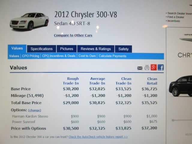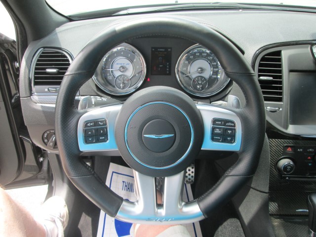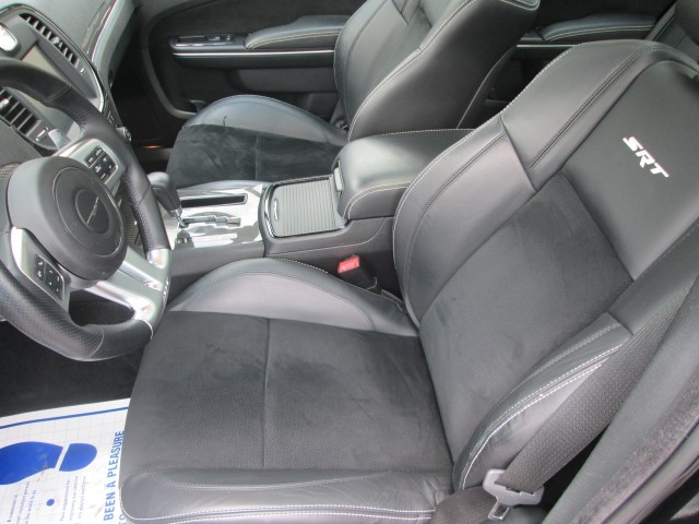 Ok if you want big luxurous fast and quick all in one car this is your most affordable car!  It is a 2012 Chrysler 300 SRT 8 with the best color combo, Gloss Black with Black Interior with light gray stitching!  This fantastic car has leather and suede seating and is very comfortable and roomy, the front seats are heated and cooled, the rear seats are heated and the steering wheel is heated as well!  The front bucket seats are dual power, power recliner, power lumbar and has a drivers side memory.  The front cup holders are hated and cooled, how is this for luxury!  It has the Panoramic sunroof for these beautiful summer evenings!  Speaking of cruising it has the Harman Kardon sound system along with Navigation!  For maximum driver comfort it is equipped with a power tilt and telescoping steering wheel! It is equipped with the factory 20 polished alloy wheels that are curb rash free and riding on recently put set of Pirelli P-0's.  For safety sake it has blind spot intervention in the mirrors!  It is not pinged or dinged up and there is no signs of it being a smokers car!  This is a luxury sedan that is a super car at heart with the 6.4 liter HEMI with 470 ground pounding horsepower and torque but still manages a great ride along with terrific handling!  It has all the books and both keys along with a clean Car Fax Report showing no accident history!