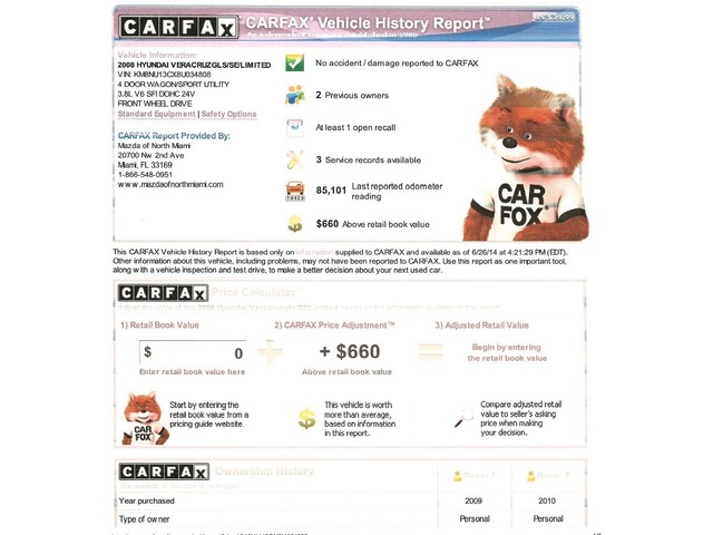 2008 VERACRUZ SE LEATHER SUNROOF 7 PASSENGER CARFAX CERTIFIED GREAT CONDITION