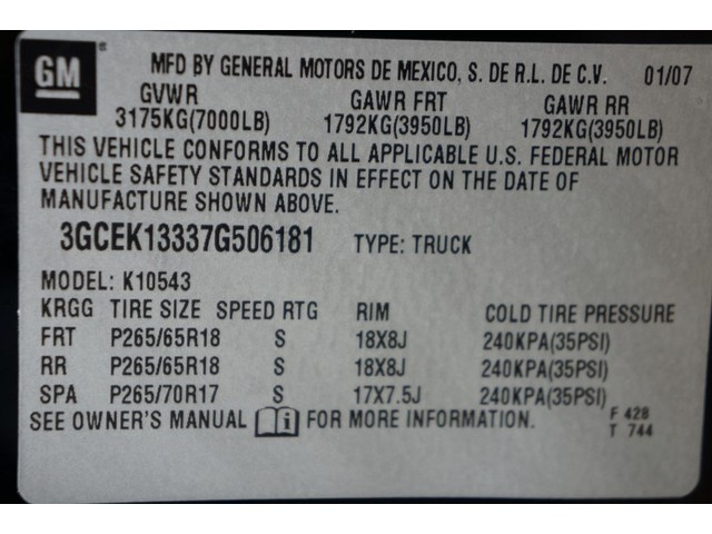 • VIN: 3GCEK13337G506181