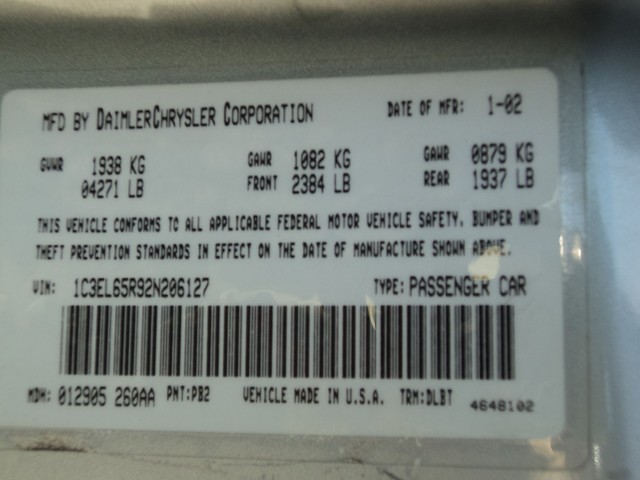 2002 Chrysler Sebring 1C3EL65R92N206127