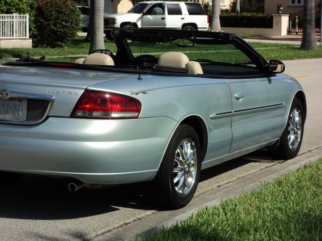 UP FOR OUR NEXT NO RESERVE AUCTION IS THIS VERY NICE2002 CHRYSLER SEBRING LIMITED CONVERTIBLE SUPER LOW MILES NON SMOKER ACCIDENT FREE NO RESERVE!. THIS CAR IS OVERALL IN GOOD CONDITION INSIDE AND OUT. THE EXTERIOR SHOWS NO MAJOR DENTS, DINGS OR SCRATCHES. THE INTERIOR ALSO SHOWS NO SIGNS OF ABUSE, (SEE ALL PICTURES FOR MORE DETAILS.) THE ENGINE RUNS STRONG AND THE TRANSMISSION IS SMOOTH. THE CAR WILL BE A STEAL AT NO RESERVE, SO BID WITH CONFIDENCE!!!