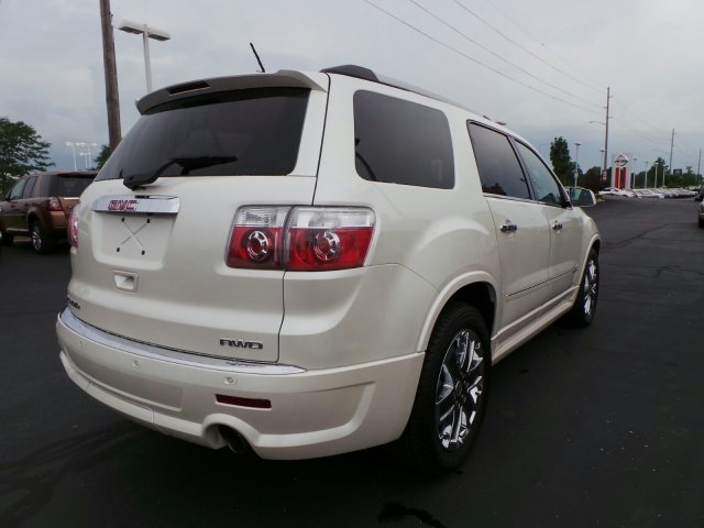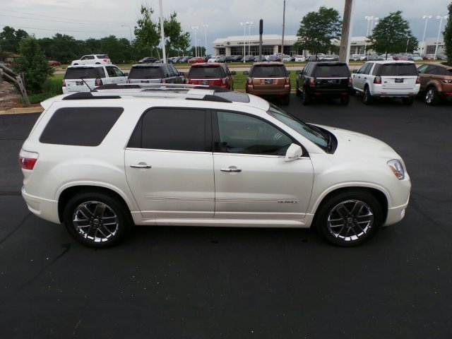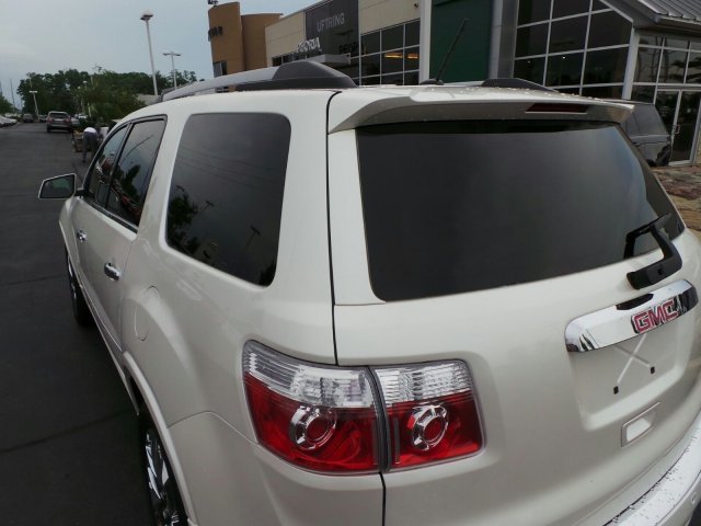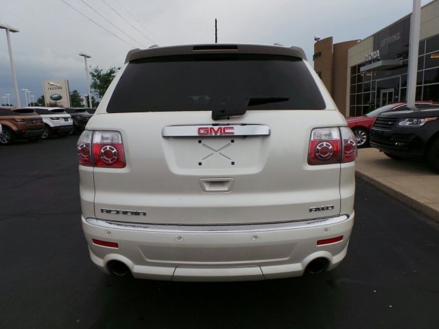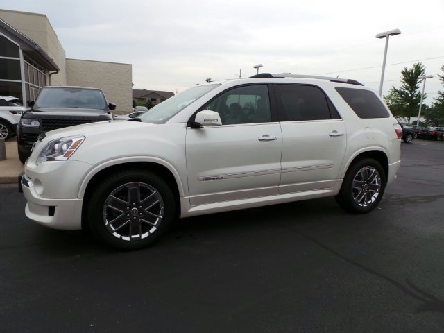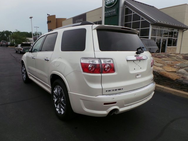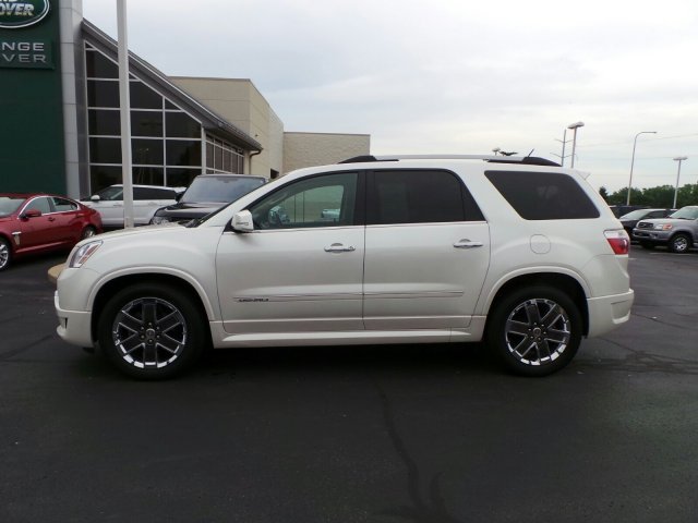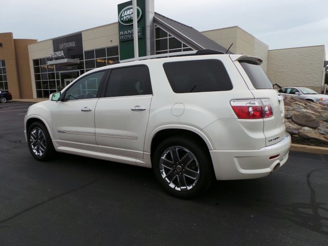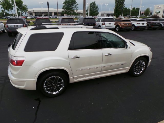 ONE OWNER, LOCAL TRADE, NONSMOKER OWNED! 2012 GMC Acadia DENALI. Pearl White, moonroof, Rear Seat Entertainment,Heated Leather Seats AWD. UFTRING CERTIFIED* COMPREHENSIVE warranty, you will have the peace of mind knowing you have 12 month or 12,000 miles of coverage*( your sales guide can share all the details). Call Us Today at Jaguar Land Rover Peoria or visit us online at www.jaguarlandroverpeoria.com