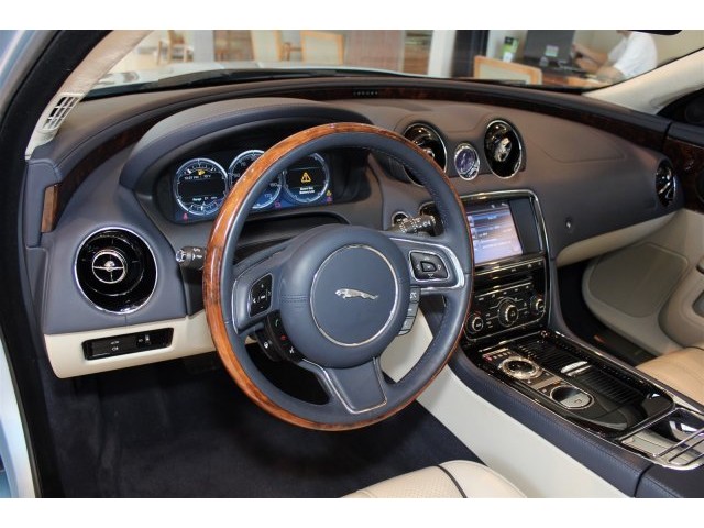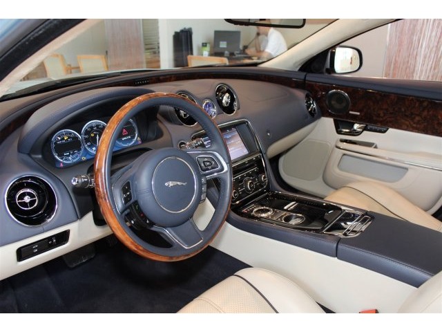 OFF LEASE! CERTIFIED TO 100K MILES! HOT COLOR! LONG WHEEL BASE XJL WITH PORTFOLIO PACKAGE BEAUTIFUL IN CRYSTAL BLUE METALLIC WITH NAVY-IVORY INTERIOR WITH CONTRAST PIPING, **EXTRA ROOM IN THE BACK**, BOWERS AND WILKINS 1200 WATT SURROUND SOUND PACKAGE, 19 INCH TOBA POLISHED ALLOYS, WOOD AND LEATHER STEERING WHEEL, REAR FOLDING BURLED WOOD BUSINESS TRAYS, WOOD AND LEATHER WRAPPED HEATED STEERING WHEEL, SOFT GRAIN LEATHER WITH CONTRAST PIPING, 20 BY 20 WAY POWER HEATED AND COOLED ACTIVE VENTILATED DRIVER AND PASSENGER SEATS, MASSAGE SEATS, HEATED AND COOLED REAR SEATS, SUEDECLOTH HEADLINER, POWER REAR SUNBLIND, 4 ZONE CLIMATE CONTROL, TOUCH SCREEN HDD NAVIGATION, REAR VIEW CAMERA, PANORAMIC ROOF WITH OPENING GLASS, SMART KEY PROXIMITY ENTRY WITH PUSH BUTTON START, VIRTUAL INSTRUMENTATION, FRONT AND REAR PARK ASSIST, BLIND SPOT MONITORING SYSTEM, BLUETOOTH CONNECTIVITY FOR PHONE AND STREAMING MUSIC, HD DIGITAL RADIO, IPOD / USB CONNECTIVITY, SIRIUS SATELLITE RADIO, HEATED POWER TELESCOPIC STEERING WHEEL, ADAPTIVE XENON LIGHTS WITH SIGNATURE LED FRONT AND REAR LIGHTING AND MORE. HAS BALANCE OF 6 YEARS 100,000 MILE JAGUAR FACTORY CERTIFIED WARRANTY! SCHEDULE YOUR TEST DRIVE TODAY!