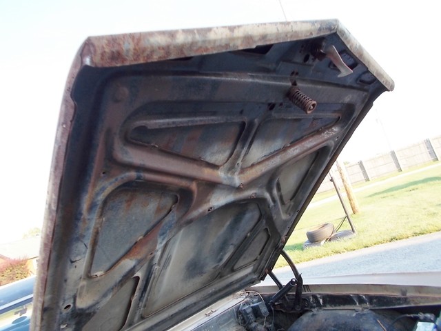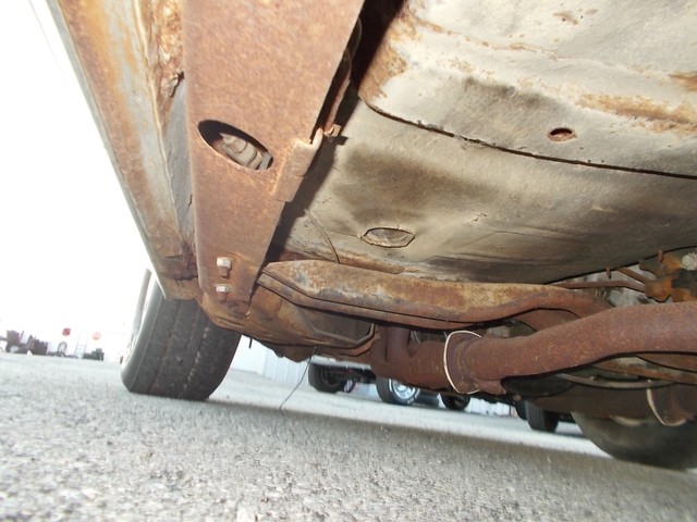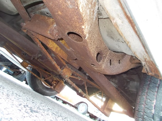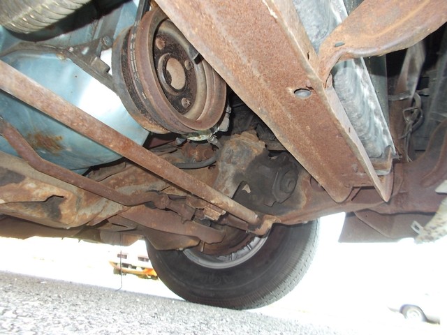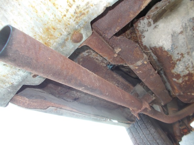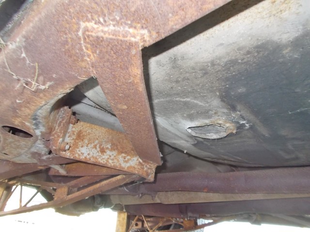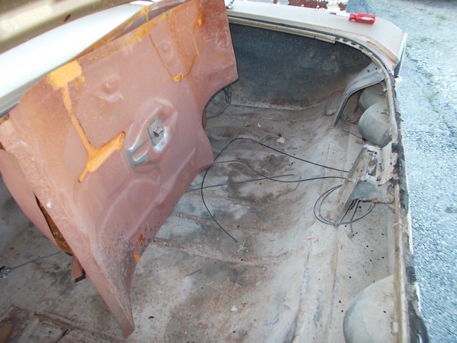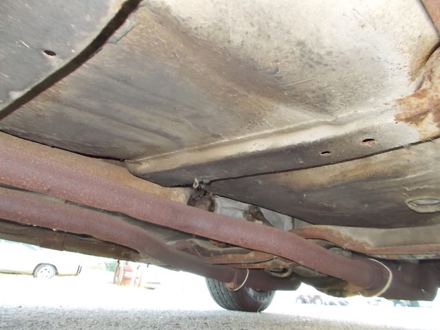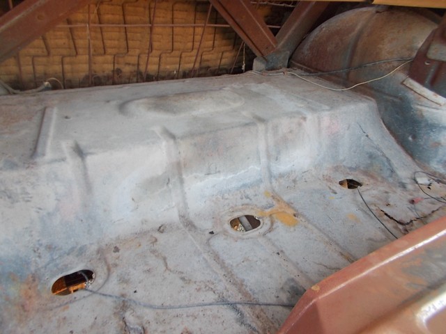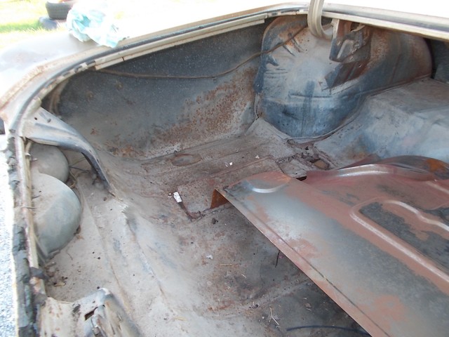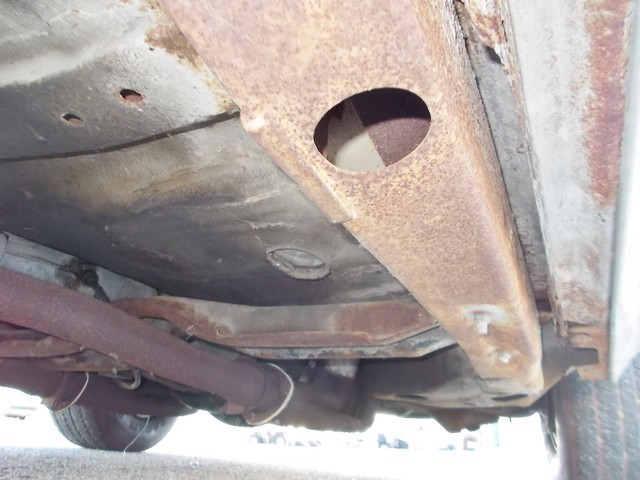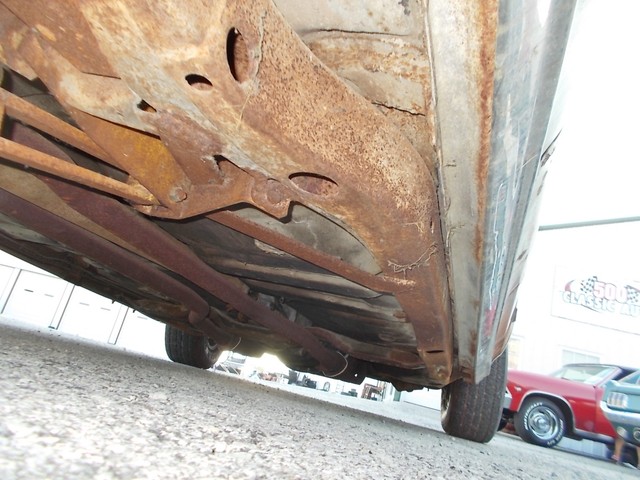 SOLID FLOORS. SOLID FRAME. NEVER WRECKD EXCEPT THAT FENDER WRINKLE. TRUNK PAN HAS A HOLE ON EACH SIDE. THAT CUT OUT SPOT IS WHERE HE WAS LOOKING FOR A VIN #, I GUESS SOME FRAMES WERE STAMPED. LT FENDER NEEDS REPLACED BUT I HAVE A AQUA FENDER THAT CAN GO WITH IT. AND THERE ARE 2 PCS. FOR THE TRUNK REPAIR. DOORS ARE GOOD EXCEPT ONE SMALL HOLE. THE QUARTERS JUST HAVE A RUST HOLE BEHIND WHEEL WELL. I WOULD JUST BUY THOSE PATCH PANELS. THE HOOD DOES HAVE A 1 INCH HOLE AT FRONT RT SIDE IN THAT CURVE. ONE RUST HOLE IN THE PC IN FRONT OF WINDSHIELD. TRUNKLID HAS SMALL HOLE RIGHT IN MIDDLE OF BACK EDGE. EVERYTHING ELSE IS REALLY SOLID.