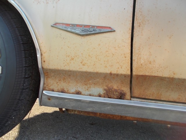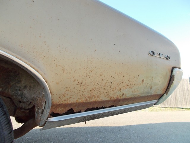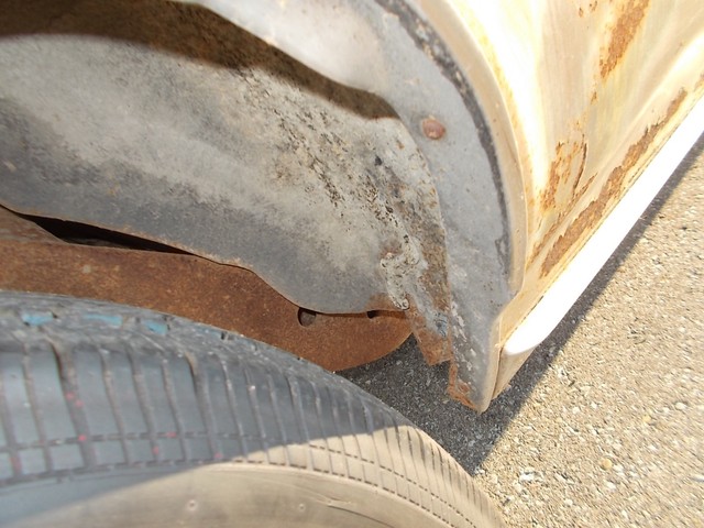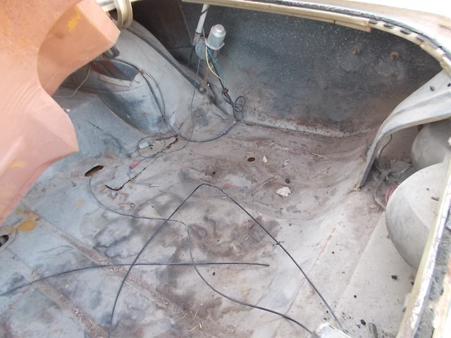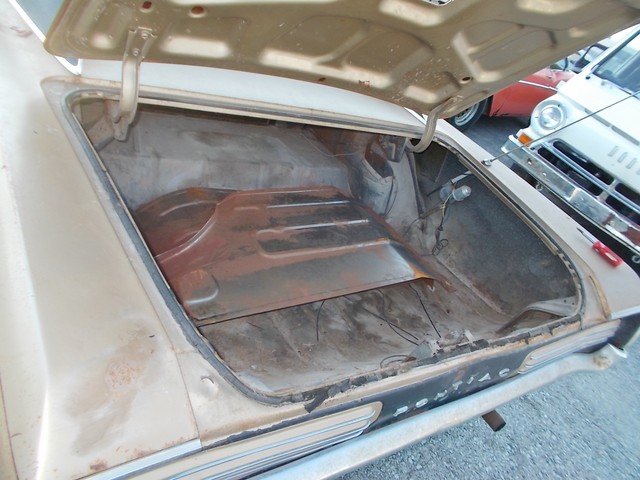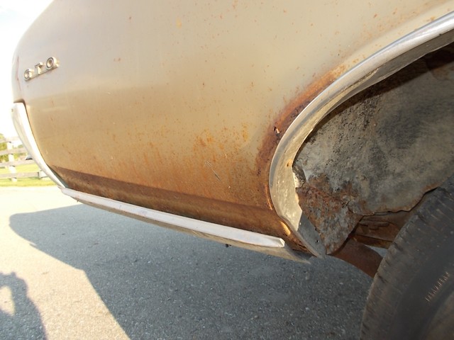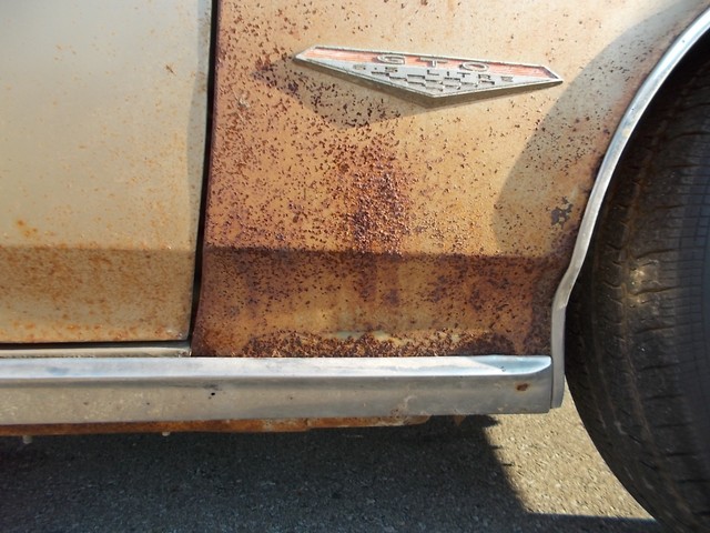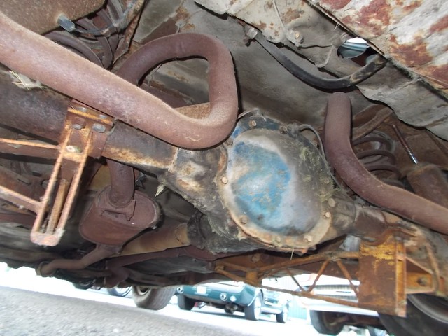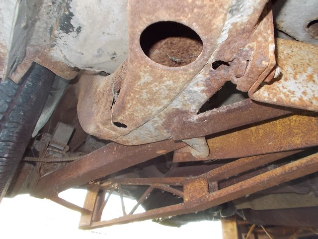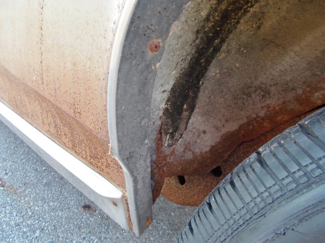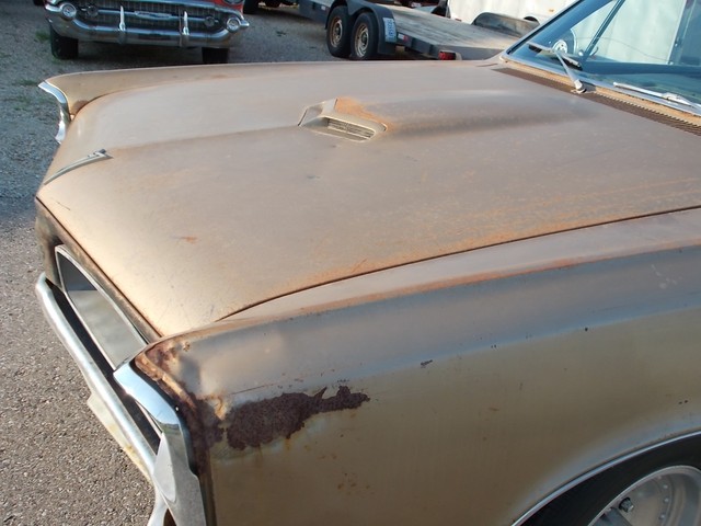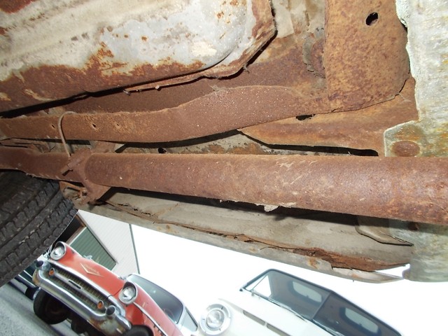 SOLID FLOORS. SOLID FRAME. NEVER WRECKD EXCEPT THAT FENDER WRINKLE. TRUNK PAN HAS A HOLE ON EACH SIDE. THAT CUT OUT SPOT IS WHERE HE WAS LOOKING FOR A VIN #, I GUESS SOME FRAMES WERE STAMPED. LT FENDER NEEDS REPLACED BUT I HAVE A AQUA FENDER THAT CAN GO WITH IT. AND THERE ARE 2 PCS. FOR THE TRUNK REPAIR. DOORS ARE GOOD EXCEPT ONE SMALL HOLE. THE QUARTERS JUST HAVE A RUST HOLE BEHIND WHEEL WELL. I WOULD JUST BUY THOSE PATCH PANELS. THE HOOD DOES HAVE A 1 INCH HOLE AT FRONT RT SIDE IN THAT CURVE. ONE RUST HOLE IN THE PC IN FRONT OF WINDSHIELD. TRUNKLID HAS SMALL HOLE RIGHT IN MIDDLE OF BACK EDGE. EVERYTHING ELSE IS REALLY SOLID.