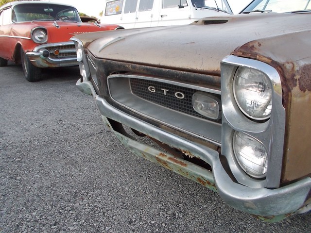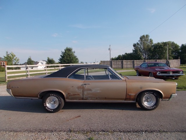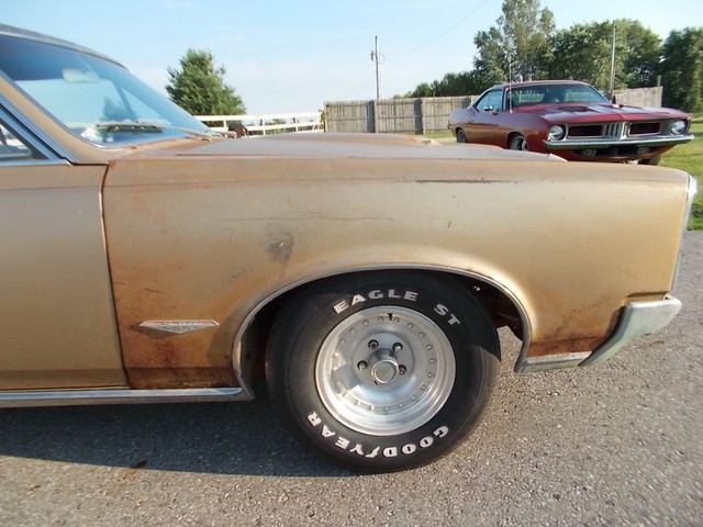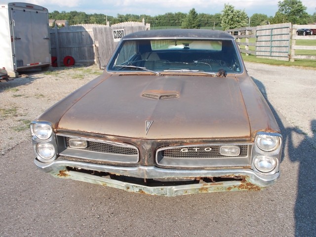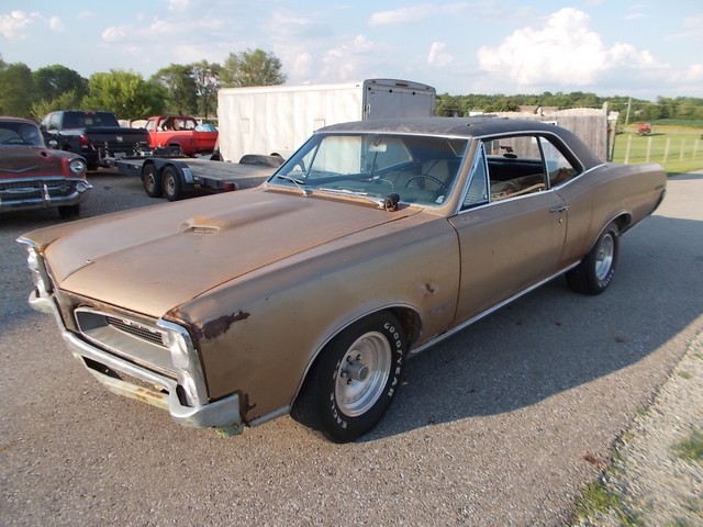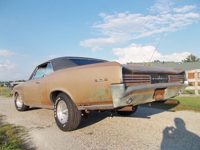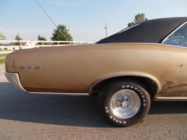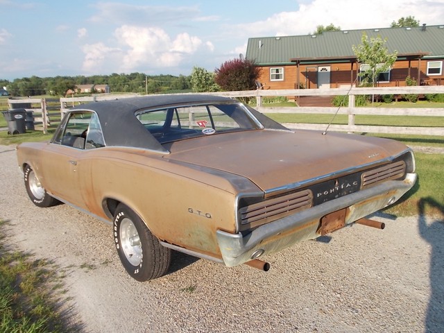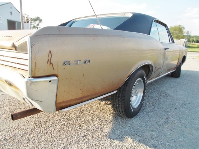 TRUE 66 GTO AND NEVER REPAINTED WITH 68' 400 PONTIAC ENGINE AND RAM AIR III HEADS PLUS TRI POWER PLUS 4 SP MUNCI. ALSO MID SIZE CAM AND HEADERS. HAS 323 POSI 10 BOLT. ALSO POWER STEERING AND DRUM BRAKES. CAR RUNS GREAT AND SHIFTS GOOD. STOPS GOOD TOO, BUT FRONT SPRINGS NEED REPLACED. LEFT SIDE RUBS TIRE IN TURN. WAS NOT A FACTORY TRI POWER CAR.LAST OWNER HAS HAD IT SINCE LIKE 85 AND HAS KEPT IT DRIVEANLE ALL THESE YEARS.