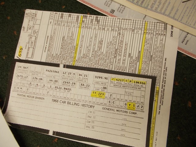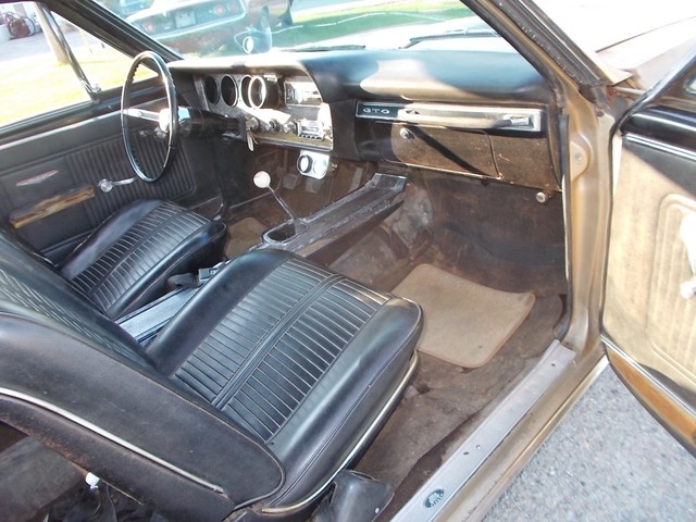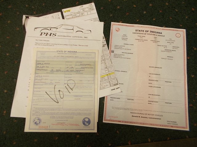 ANOTHER PROBLEM, THE ORIG VIN TAG IS GONE AND IT HAS BEEN RE-VINED IN INDIANA. NOW DONT MOVE ON YET. READ ALL OF THIS, PLEASE. THE GUY I BOUGHT HER FROM SAYS IT NEVER HAD A TAG SINCE HE HAD IT BUT HE HAS THE CORRECT VIN # ON THE CORRECT TITLE THAT BMV LET HIM KEEP AFTER THE RE-VIN. HE HAD IT RE-VINED BUT DIDNT DRILL HOLES, HE GLUED IT ON. HE HAS THE PHS THAT SHOWS IT CAME IN BRONZE WITH BLACK BUCKET SEAT INT, IT HAD A 389 4BBL AND AUTOMATIC WITH 323 GEAR AND NO POWER OPTIONS. THIS CAR RIGHT NOW HAS THE ORIGINAL PAINT AND INTERIOR. YES, ITS NEVER BEEN REPAINTED. SO, YOU CAN TELL THE PAINT CODE IS CORRECT. IT CAME NEW WITH AUTOMATIC. THE 4SPEED HUMP HAS BEEN ADDED. THE HUMP IS SCREWED ON. SO, THIS IS A GTO BUT NOT # MATCHING AND THE RE-VIN MEANS THE TITLE READS REBUILT.