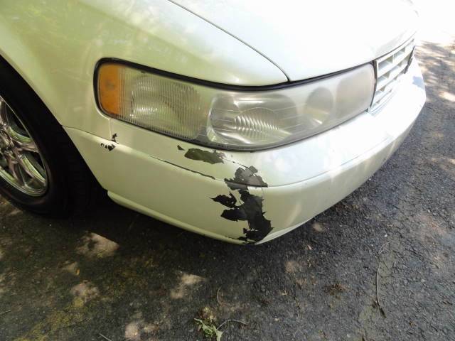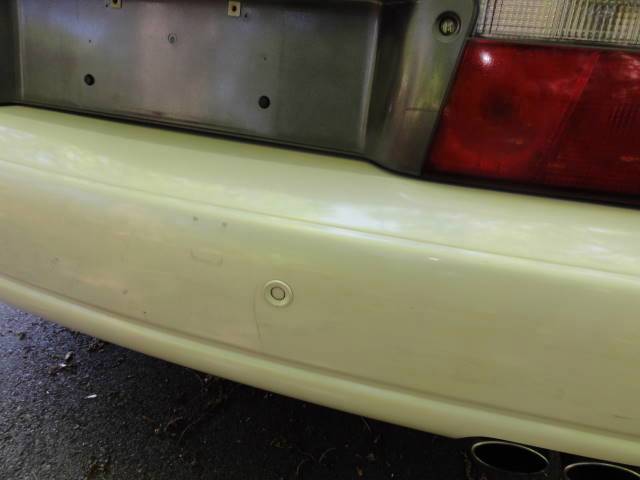 The exterior is in good/decent condition. The paint is brilliant and gleams. It has a few scratches and paint chips. The paint is chipping and there is a light dent on center edge of the hood. The front bumper is cracked on the right and has some paint chips as shown. Both rear quarters have rust/rot marks as shown. The rear bumper has some scuffs and a small crack on the right. There is a small rust mark on the bottom of the right front fender. There are a few marks as shown. There are no major dents to be found.