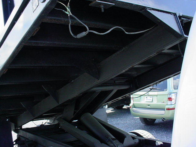 DUMP BODY HAS A SOLID FLOOR AND SIDES, AS WOULD BE EXPECTED ON A 10 YEAR OLD WORK TRUCK THE BED FLOOR HAS SOME PITTING ON TOP  ( SEE PICS),  BED FLOOR IS SOLID, NO HOLES, FRAME IS SOLID, UNDERCARRIAGE OF TRUCK IS SOLID, THE UNDERSIDE OF THE DUMP BED TWORDS THE FRONT HAS SOME SCALING, NO HOLES ( SEE PICS), THE DUMP BODY WORKS GREAT, WE JUST WANT YOU TO KNOW WHAT WE KNOW !