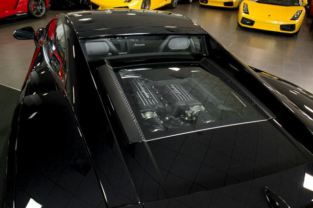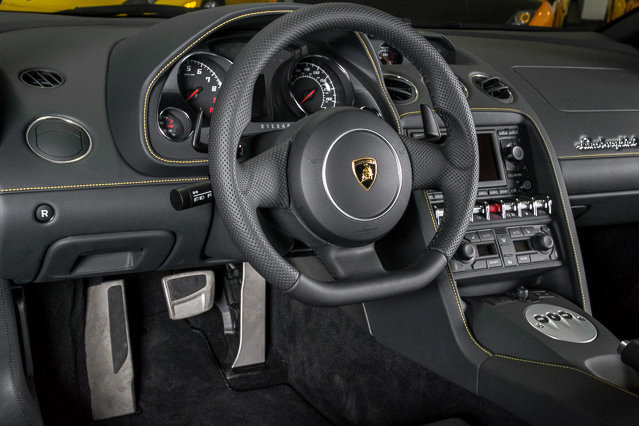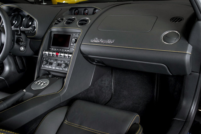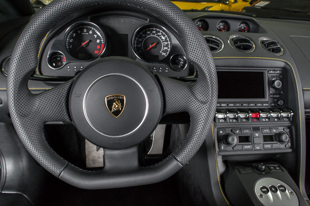 This is a like-new 2014 Lamborghini Gallardo LP550-2 Cpe equipped with a 5.2L 550HP V10 engine and a 6-speed E-Gear (Paddle shift & Auto) transmission. This car is finished in a gorgeous Nero Noctis (Gloss Black) exterior color and Nero Perseus (Black) full leather sportive (perforated) interior along with Yellow contrast stitching throughout.