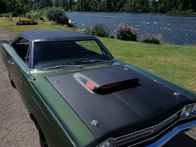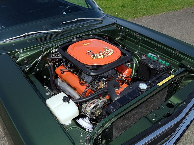 Finished in the factory colors of Ivy Green Metallic with Matte Black lift-off hood and Black bench seat interior with custom gauges. Incredible, all original body panels with stunning, rust free undercarriage. Runs and drives excellent with awesome power coming from the original 440 V8 6 Pac with original 4-speed transmission and dana 60 posi-track rear end.