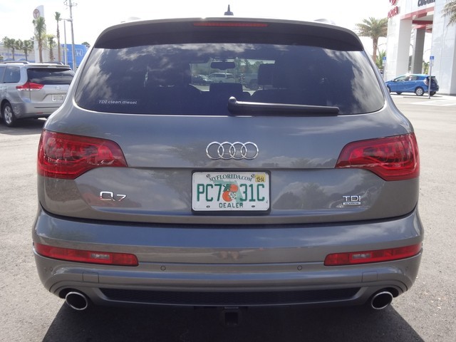 New Arrival! QUATTRO ALL-WHEEL DRIVE, BLUETOOTH, HEATED FRONT SEATS, LEATHER SEATS, AND MULTI-ZONE AIR CONDITIONING. VALUE PRICED BELOW THE MARKET! POPULAR COLOR COMBO! This 2012 Audi Q7 TDI PREM has a sharp Gray exterior and a super clean Black interior! Our vehicles are value priced and move quickly. Be sure to call us to confirm availability and to schedule a hassle free test drive! We are located at: 11340 Philips Highway, Jacksonville, FL 32256. **Price excludes tax, tag, dealer installed options, $98 private tag agency fee and $699.00 pre-delivery service fee. The options and features include: Advanced Dual-Stage Frontal Airbags, Alarm System w/Immobilizer, Front Seat-Mounted Side Thorax Airbags, HomeLink Universal Remote Control, Second-Row Outboard Side Airbags, Audi 7-Channel DSP Sound System, Audi Music Interface w/iPod Cable, Auto-Dimming Interior Rearview Mirror, Bluetooth Connectivity, Dual-Zone Automatic Climate Control System, Electronic Cruise Control, Leather Seating Surfaces, Manual Tilt/Telescopic Steering Column, Power Central Locking w/Selective Unlock, Power Heated Front Seats, Satellite Radio Capability, Steering-Mounted Wheel Audio Controls, Front & Rear Fog Lights, Heated Windshield Washer Nozzles, Power Heated Exterior Mirrors w/Signals, Power Tailgate, Remote Keyless Entry System, Trailer Hitch Provision, Anti-Slip Regulation, Electronic Brake Pressure Distribution, Electronic Stabilization Control, Power 4-Wheel Ventilated Disc Anti-Lock Brakes, Quattro Permanent All-Wheel Drive System, Rear Parking Sensors, Rollover Mitigation System, Servotronic Speed-Sensitive Power Steering, Torque-Sensing Center Differential
