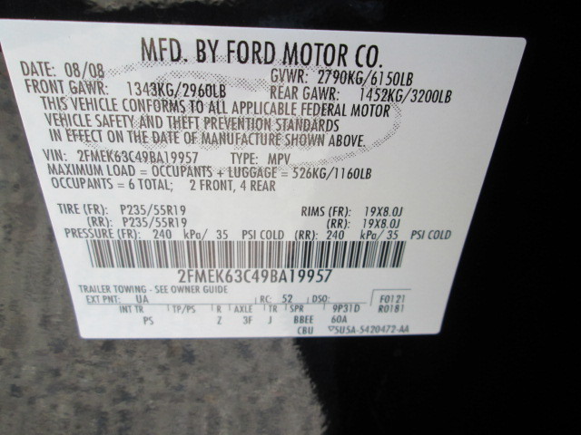 • VIN: 2FMEK63C49BA19957